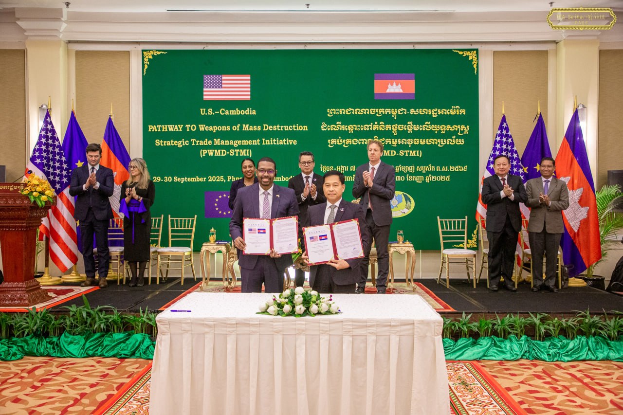 ភ្នំពេញ៖ សហរដ្ឋអាមេរិក និងកម្ពុជា បានចាប់ផ្តើមគំនិតផ្តួចផ្តើមរួមថ្មីមួយសម្រាប់កិច្ចសហប្រតិបត្តិការលើគ្រប់គ្រងប្រភេទទំនិញយុទ្ធសាស្រ្តទ្វេមុខ ដោយជំរុញយុទ្ធសាស្រ្តគ្រប់គ្រងពាណិជ្ជកម្មអាវុធមហាប្រល័យ-Pathway to Weapons of Mass Destruction Strategic Trade Management Initiative (PWMD-STMI) ដើម្បីបង្កើនការការពារសន្តិសុខតាមព្រំដែនរបស់កម្ពុជា ប្រឆាំងអាវុធមហាប្រល័យ និងជំរុញកំណើនសេដ្ឋកិច្ច ដើម្បីធ្វើឱ្យប្រទេសរបស់យើងកាន់តែមានសុខសុវត្ថិភា។ នេះបើយោងតាមការផ្សព្វផ្សាយរបស់ស្ថានទូតសហរដ្ឋអាមេរិកប្រចាំកម្ពុជា នៅថ្ងៃទី០១ ខែតុលា ឆ្នាំ២០២៥នេះ។