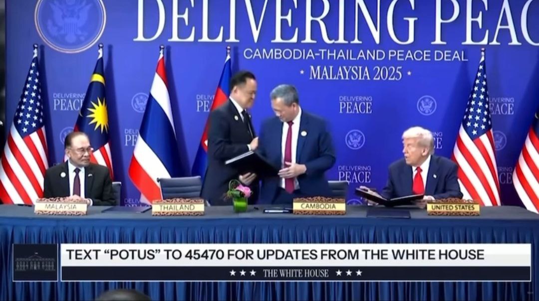 នៅថ្ងៃអាទិត្យ ២៦ តុលា ឆ្នាំ២០២៥ នេះ ពិធីចុះហត្ថលេខាលើកិច្ចព្រមព្រៀងសន្តិភាព កម្ពុជា-ថៃ បានប្រព្រឹត្តទៅដោយរលូន និងប្រកបដោយលទ្ធផលផ្លែផ្កា ក្រោមអធិបតីភាព ប្រធានាធិបតីអាមេរិក ដូណាល់ ត្រាំ ជាសាក្សី និងវត្តមាននាយករដ្ឋមន្រ្តីម៉ាឡេស៊ី អំឡុងកិច្ចប្រជុំកំពូលអាស៊ាន។