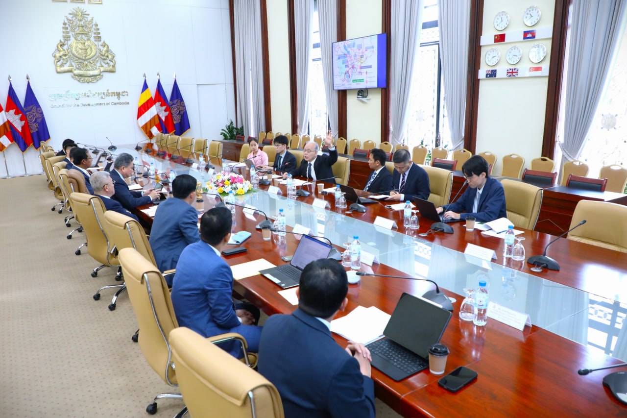 ភ្នំពេញ៖ នាព្រឹកថ្ងៃចន្ទ ទី២៤ ខែវិច្ឆិកា ឆ្នាំ២០២៥ លោក ស៊ុន ចាន់ថុល ឧបនាយករដ្ឋមន្ត្រី អនុប្រធានទី១ ក្រុមប្រឹក្សាអភិវឌ្ឍន៍កម្ពុជា បានទទួលជួបគណៈប្រតិភូមជ្ឈមណ្ឌលស្រាវជ្រាវសេដ្ឋកិច្ចអាស៊ាន និងអាស៊ីបូព៌ា (ERIA) ដឹកនាំដោយលោក YAMADA Yasuhiro មន្ត្រីជាន់ខ្ពស់ផ្នែកគោលនយោបាយ ដើម្បីធ្វើការរាយការណ៍ជូនអំពីវឌ្ឍនភាពនៃការសិក្សាសមិទ្ធិលទ្ធភាព នៃគម្រោងអភិវឌ្ឍន៍តំបន់សេដ្ឋកិច្ចពិសេសបៃតង កម្ពុជា-ជប៉ុន។