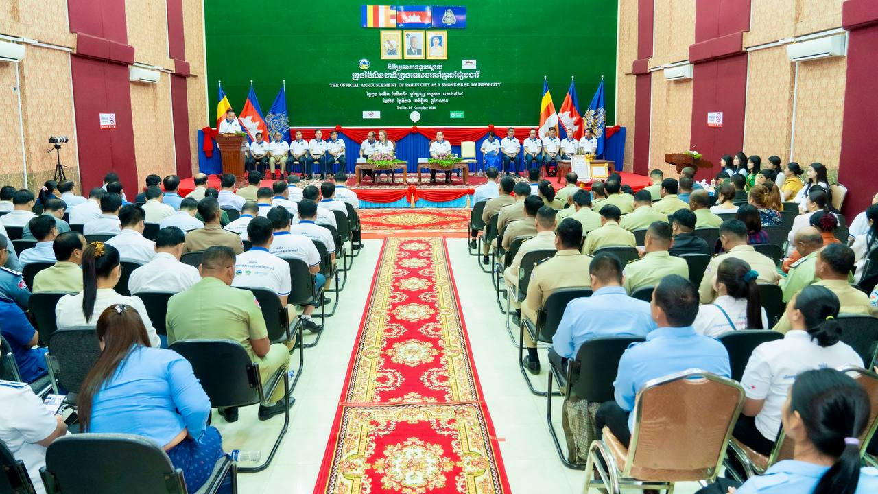 ប៉ៃលិន៖ លោក ហួត ហាក់ រដ្ឋមន្ត្រីក្រសួងទេសចរណ៍ រួមជាមួយលោកស្រីវេជ្ជបណ្ឌិត ម៉ារីយ៉ាណា ទ្រីយ៉ាស ប្រធានអង្គការសុខភាពពិភពលោកប្រចាំកម្ពុជា បានអញ្ជើញជាអធិបតីក្នុងពិធីប្រកាសជាផ្លូវការ “ក្រុងប៉ៃលិនជាទីក្រុងទេសចរណ៍គ្មានផ្សែងបារី”។
