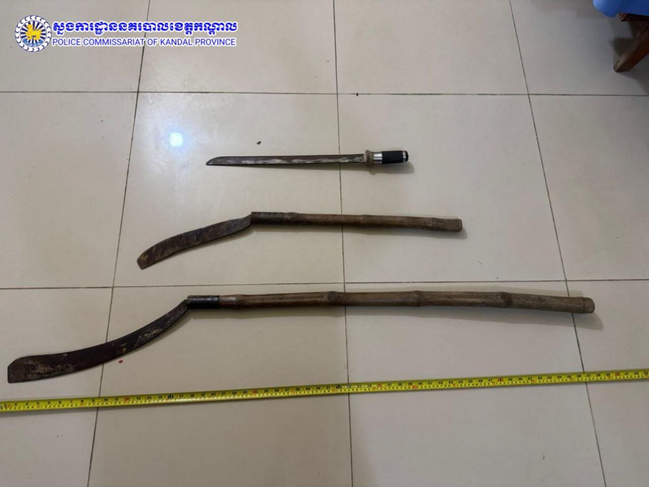 ចំពោះវត្ថុតាងចាប់យករួមមាន៖ កាំបិតផ្គាក់ ០១ ផ្លែដែកដងឫស្សី ប្រវែង១,៤៦ម៉ែត្រ, កាំបិតផ្គាក់ ០១ ផ្លែដែកដងឫស្សី ប្រវែង០,៥៥ម៉ែត្រ, ដាវកែច្នៃ ០១ ផ្លែដែកដងដែក ប្រវែង០,៥៨ម៉ែត្រ និងម៉ូតូ ចំនួន ០៤ គ្រឿង។