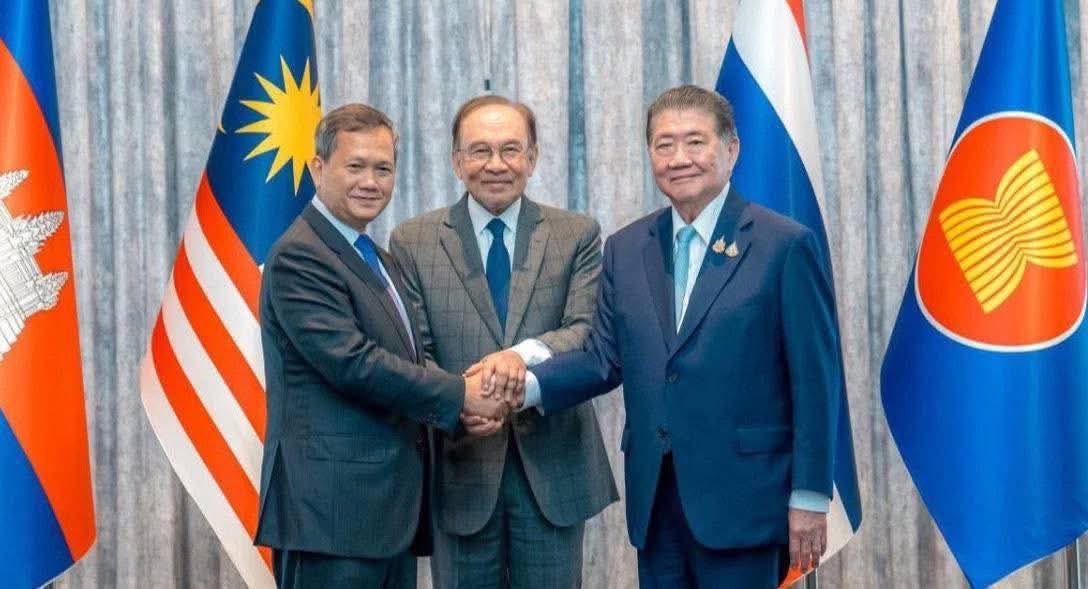 សូមជម្រាបថា កិច្ចប្រជុំពិសេសលើកទី២ របស់គណៈកម្មាធិការព្រំដែនទូទៅ (GBC) រវាងកម្ពុជា និងថៃ មានឧបនាយករដ្ឋមន្ត្រី ទៀ សីហា រដ្ឋមន្ត្រីក្រសួងការពារជាតិកម្ពុជា និងនាយឧត្តមសេនីយ៍ Nattaphon Narkphanit រដ្ឋមន្ត្រីក្រសួងការពារជាតិថៃ ជាសហប្រធាន និងក្រោមការសង្កេតការណ៍ដោយតំណាងប្រទេសម៉ាឡេស៊ី តំណាងសហរដ្ឋអាមេរិក និងក្រុមការងារអ្នកសង្កេតការណ៍អន្តរកាល (IOT) ប្រចាំនៅប្រទេសកម្ពុជា និងថៃ មានម៉ាឡេស៊ី និងអាមេរិក ជាអ្នកសម្របសម្រួលឱ្យមានកិច្ចប្រជុំដែលទទួលបាននូវលទ្ធផលជាផ្លែផ្កានាថ្ងៃនេះ។