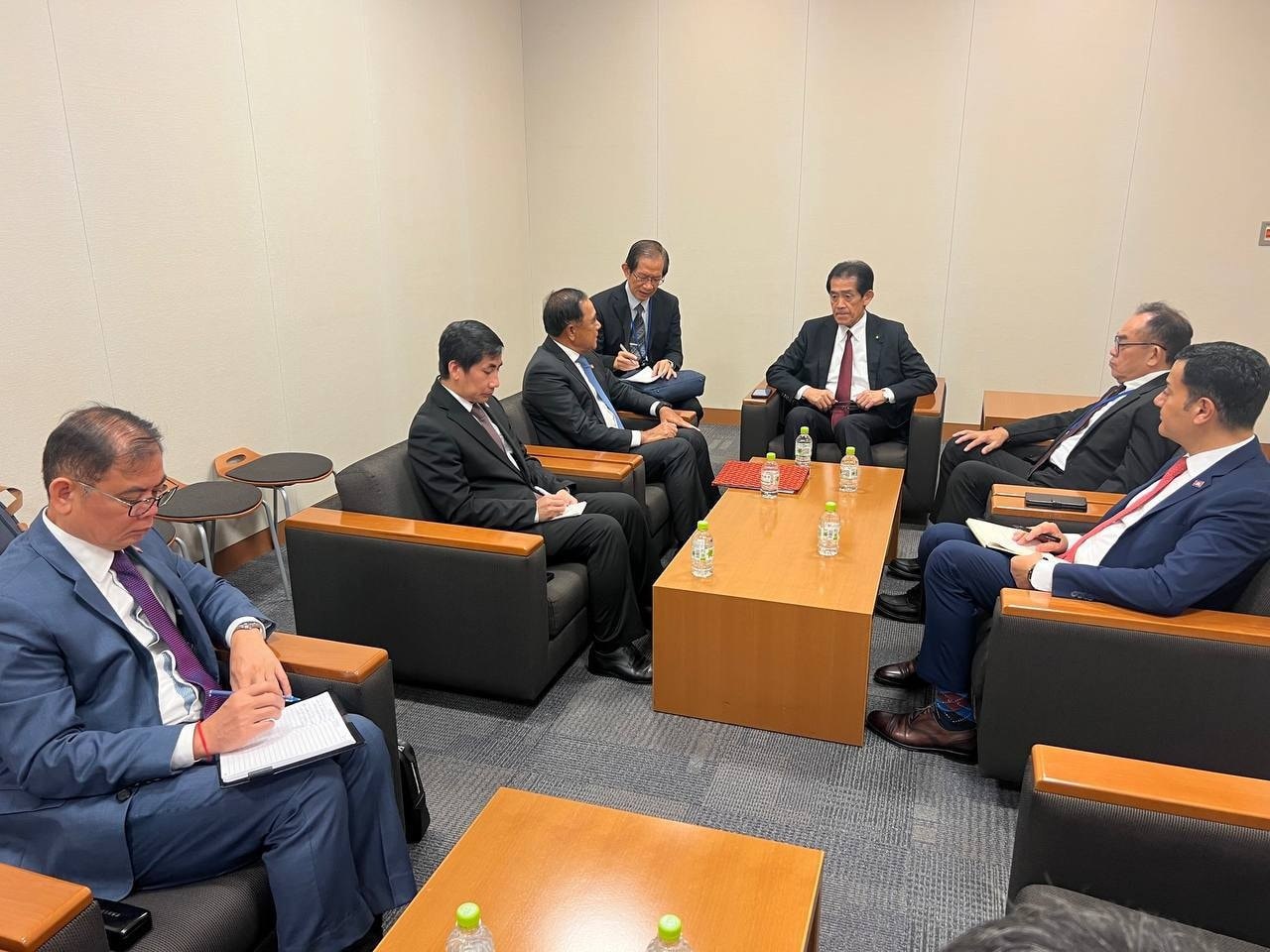 តូក្យូ៖ នៅថ្ងៃទី២៣ ខែតុលា ឆ្នាំ២០២៥ លោក លី ធុជ ទេសរដ្ឋមន្ត្រី អនុប្រធានទី១ អាជ្ញាធរមីន បានជួបសម្តែងការគួរសម និងពិភាក្សាការងារជាមួយ លោក AISAWA Ichiro សមាជិកសភានៃប្រទេសជប៉ុន នៅអគាររដ្ឋសភាជប៉ុន (The National Diet Building)។