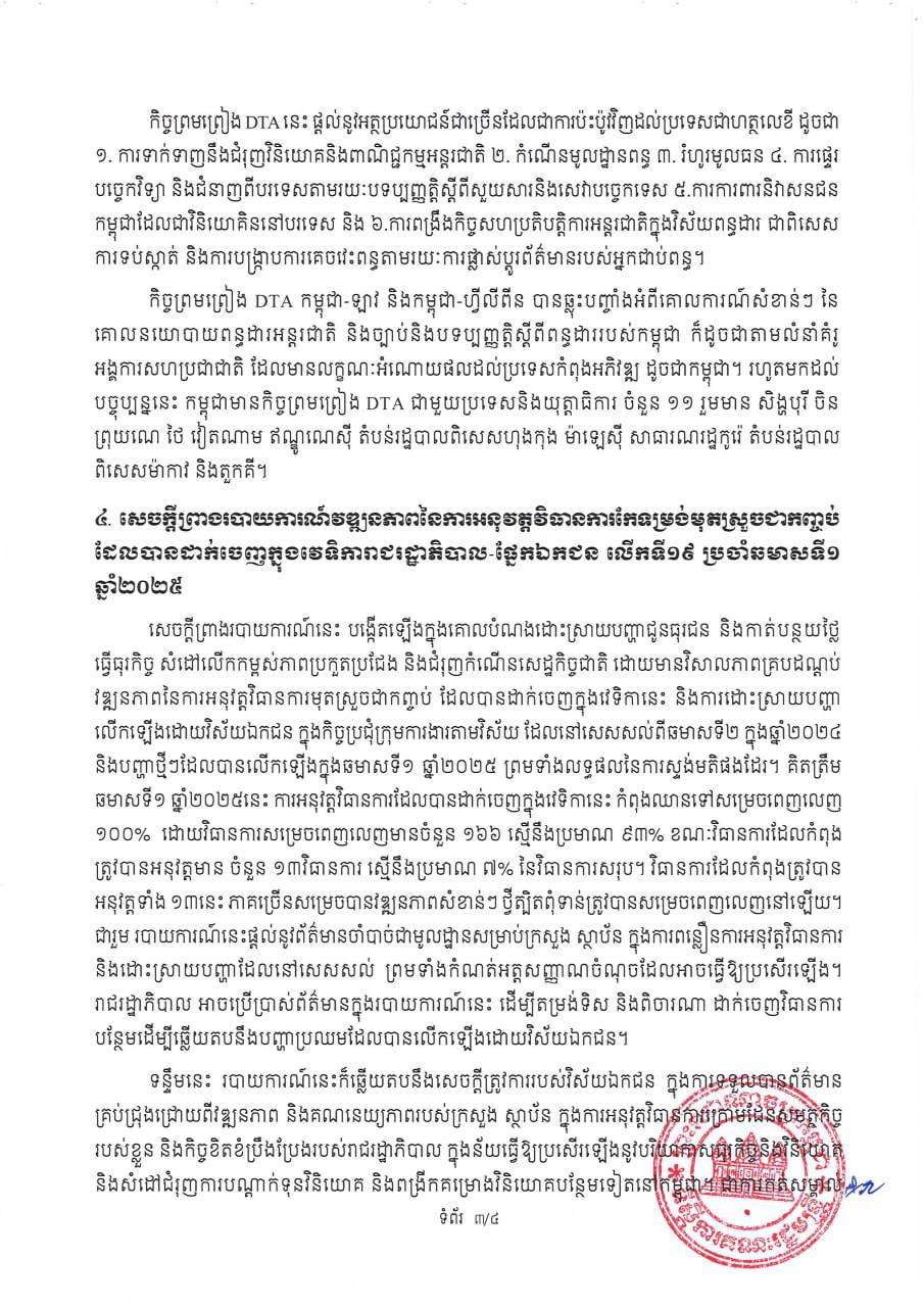 សូមជម្រាបថា កម្ពុជា បាននិងកំពុងចរចាកិច្ចព្រមព្រៀង ស្តីពី ការលុបបំបាត់ការយកពន្ធត្រួតគ្នាពាក់ព័ន្ធនឹងពន្ធលើប្រាក់ចំណូល និងការបង្ការការគេចវេះពន្ធ និងការចៀសវាងពន្ធ (Double Taxation Agreement- DTA) ជាមួយបណ្តារដ្ឋសមាជិកអាស៊ាន អាស៊ានបូកបី និងបណ្តាប្រទេស ឬយុត្តាធិការមួយចំនួនទៀត ដោយផ្អែកលើលក្ខណវិនិច្ឆ័យចម្បង ដូចជាកាតព្វកិច្ចអន្តរជាតិ កិច្ចសហប្រតិបត្តិការអន្តរជាតិប្រទេស ឬយុត្តាធិការដែលជាដៃគូវិនិយោគធំៗ និងតាមការស្នើសុំចរចារបស់បណ្តាប្រទេស ឬយុត្តាធិការទាំងនោះ។