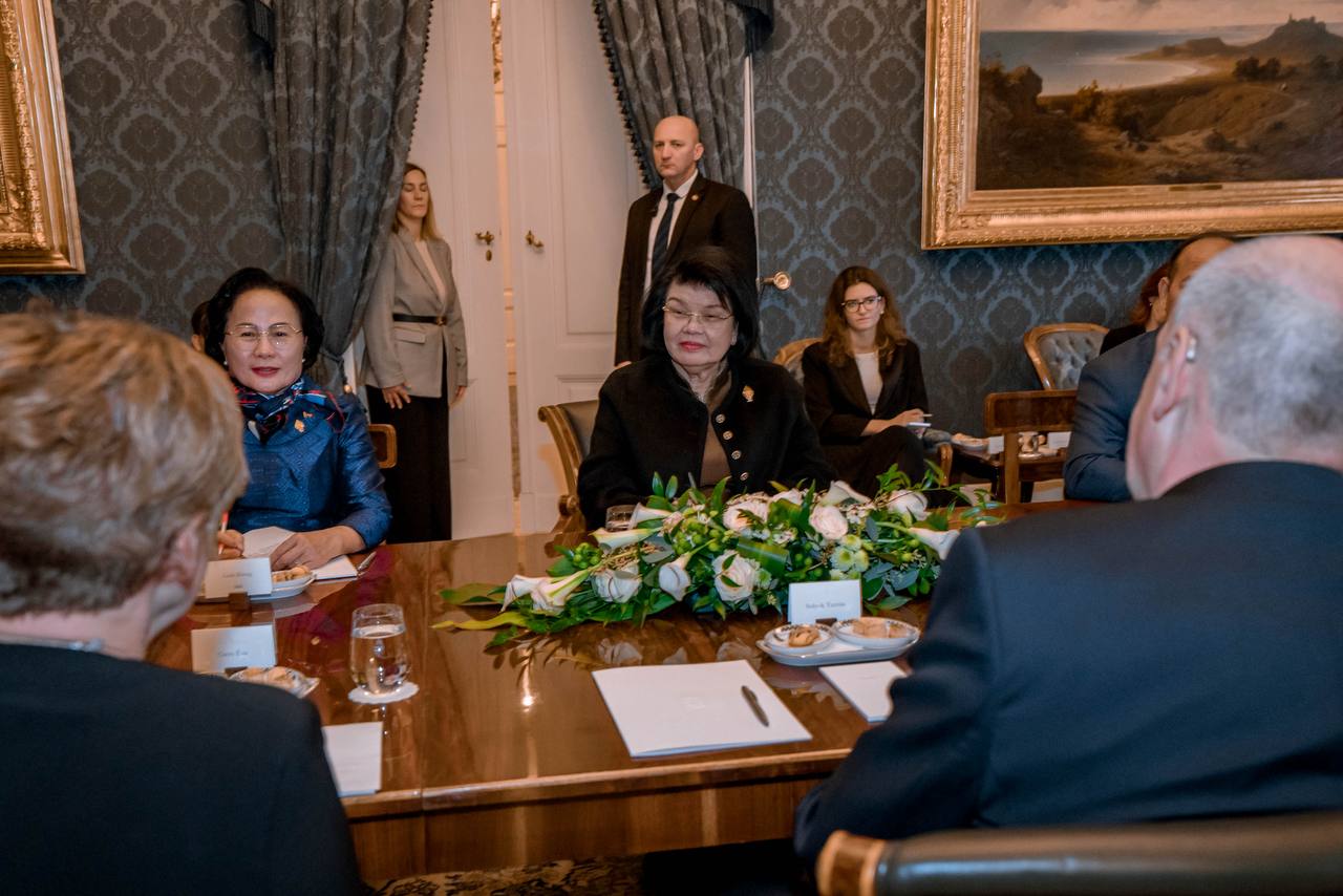 ក្នុងឱកាសបំពេញទស្សនកិច្ចផ្លូវការនៅប្រទេសហុងគ្រី នៅថ្ងៃទី២៧ ខែតុលា ឆ្នាំ២០២៥ សម្តេចរដ្ឋសភា ឃួន សុដារី ប្រធានរដ្ឋសភា បានចូលជួបសម្តែងការគួរសម និងពិភាក្សាការងារ ជាមួយ លោក តាម៉ាស ស៊ូលយ៉ូក (Tamás Sulyok) ប្រធានាធិបតីហុងគ្រី។ នៅក្នុងឱកាសនោះ សម្តេចប្រធានរដ្ឋសភា និងលោកប្រធានាធិបតី បានពិភាក្សាគ្នាជាច្រើនពីតម្លៃសន្តិភាព។
