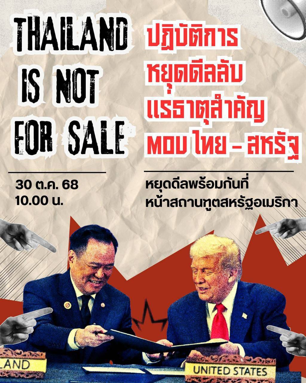 ថៃ៖ កាសែតថៃ Khaosod ចុះផ្សាយថា៖ លោក Srisuwan ប្រធានអង្គការស្នេហាជាតិ និងដីធ្លីថៃ នៅថ្ងៃទី២៩ ខែតុលានេះ បានដាក់ពាក្យបណ្តឹងចោទប្រកាន់លោក Anutin ទៅកាន់ការិយាល័យគណៈកម្មាធិការជាតិប្រឆាំងអំពើពុករលួយ (NACC) ដើម្បីស្នើសុំឱ្យមានការស៊ើបអង្កេតនាយករដ្ឋមន្រ្តីថៃ ។ ទាក់ទងនឹងការចុះហត្ថលេខាលើអនុស្សរណៈនៃការយោគយល់គ្នា (MOU) ស្តីពីរ៉ែកម្ររវាងថៃ និងសហរដ្ឋអាមេរិក ដោយចោទថាមានការលាក់បាំងព័ត៌មានពីសាធារណជន ឬប្រព័ន្ធផ្សព្វផ្សាយមុនពេលចុះហត្ថលេខា។ ទង្វើរបស់នាយករដ្ឋមន្រី្តថៃ អាចប៉ះពាល់ដល់អធិបតេយ្យភាព និងផលប្រយោជន៍របស់ប្រទេសជាតិថៃ។