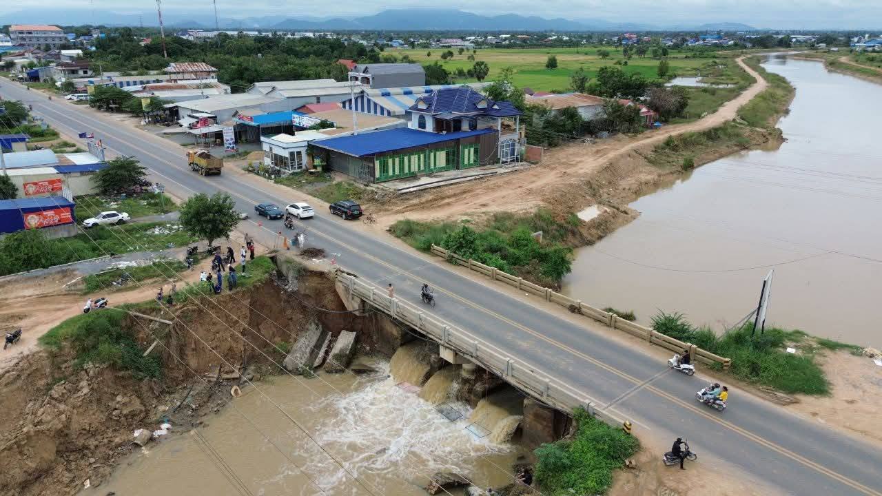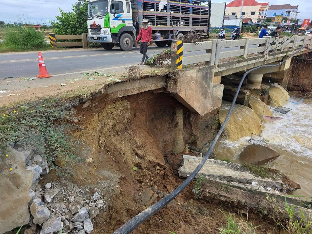 កំពង់ស្ពឺ៖ ទឹកបានហូរច្រោះបាក់ដីគល់ស្ពានថ្មថ្មីមួយកន្លែង ឆ្លងស្ទឹងតូច អតីតស្ពានបារាំងចាស់ ស្ថិតតាមបណ្តោលផ្លូវជាតិលេខ ៤១ ចន្លោះគីឡូម៉ែត្រលេខ ៦-៧ ស្ថិតក្នុងភូមិកំណប់ ឃុំរលាំងគ្រើល ស្រុកសំរោងទង ខេត្តកំពង់ស្ពឺ ពេលនេះ ត្រូវបានក្រុមការងារចាប់ផ្តើមជួយជុលឡើងវិញ ប៉ុន្តែមិនបានប៉ះពាល់ដល់ការធ្វើចរាចរដឹកទំនិញឆ្លងកាត់ឡើយ។