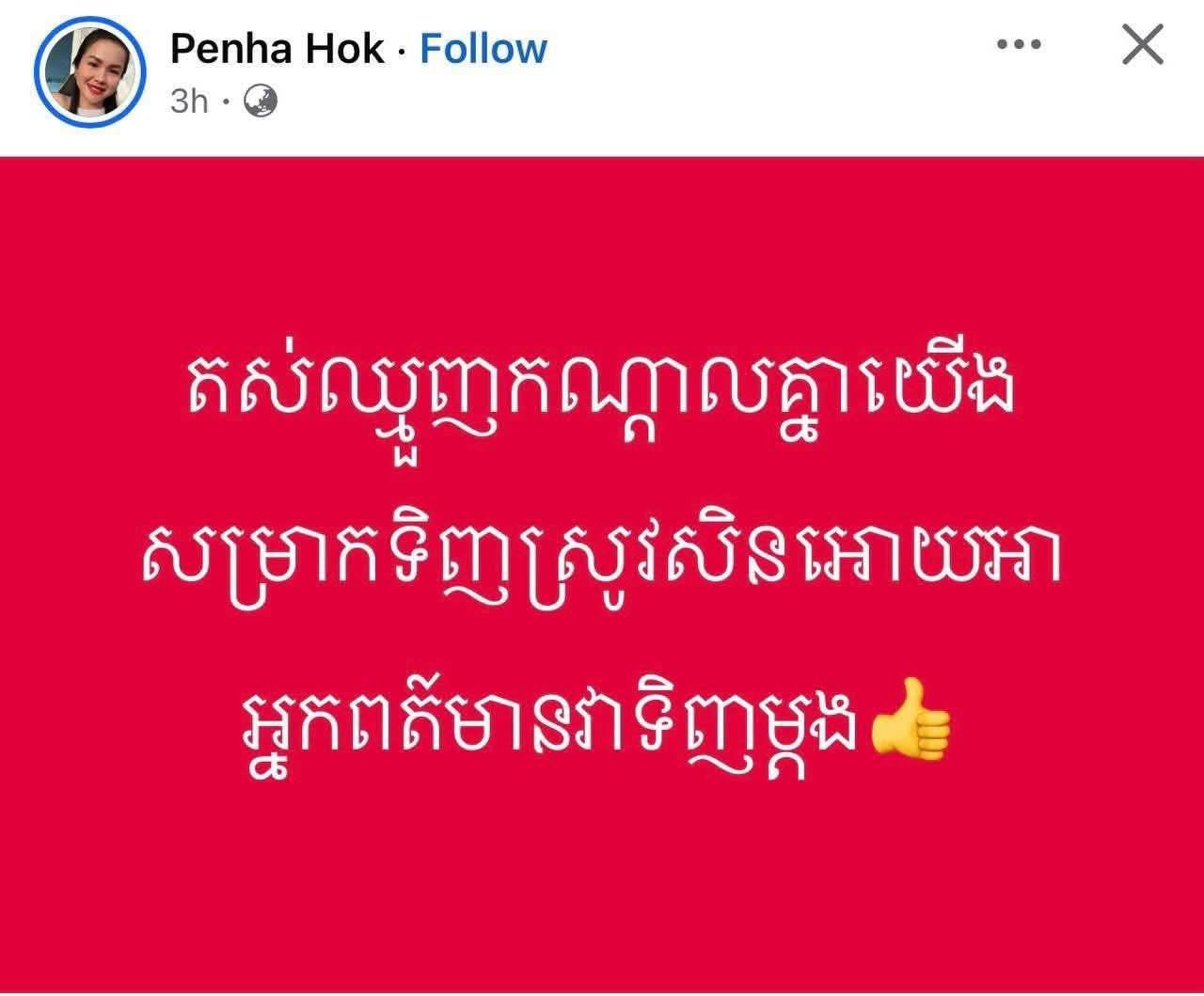 បន្ទាប់ពីស្រី្តរូបនេះបានធ្វើការបង្ហោះលើសំណេរក្នុងបណ្ដាញសង្គមនូវខ្លឹមសារថា ៖ តោះឈ្មួយកណ្ដាលគ្នាយើង សម្រាកទិញស្រូវសិន អោយអ្នកព័ត៌មានវាទិញម្ដង ការបញ្ចេញការប្រតិកម្មរបស់ស្រី្តជាឈ្មួញស្រូវម្នាក់នេះ បន្ទាប់ពីសារព័ត៌មានក្នុងស្រុកជាច្រើនអង្គភាព បានចុះផ្សាយព្រោងព្រាតអំពើក្ដីកង្វល់របស់ប្រជាកសិកខ្មែរ ដែលបានត្អូងត្អែរអំពីតម្លៃស្រូវចុះថោកខ្លាំង ធ្វើឲ្យពួកគាត់ជាប្រជាកសិកប្រឈមមុខការខាតបង់ និងមិនរួចនិងការចំណាយនោះ ។