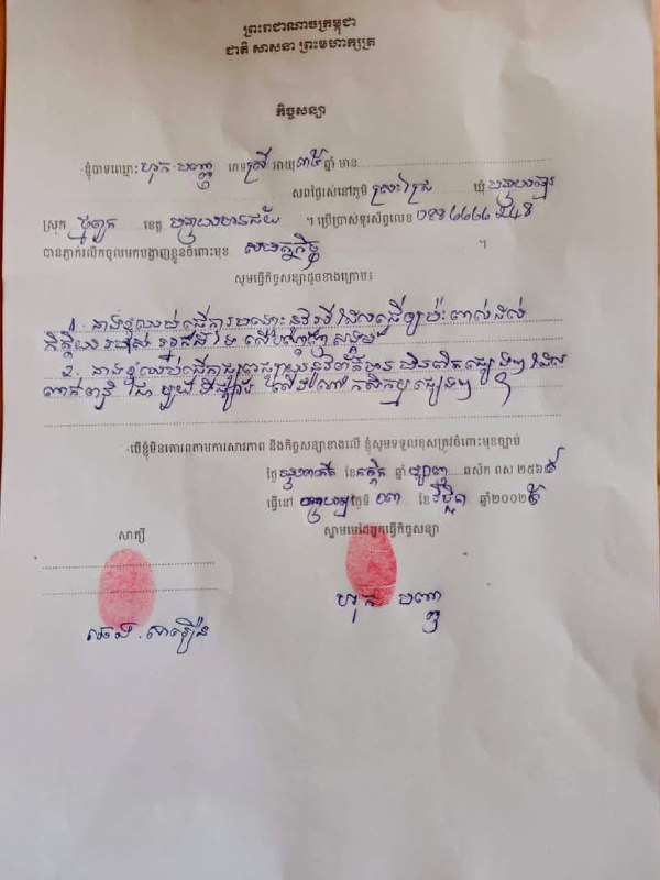 បន្ទាយមានជ័យ៖ នៅព្រឹកថ្ងៃទី៣ ខែវិច្ឆិកា ឆ្នាំ ២០២៥នេះ មន្ត្រីនគរបាលប៉ុស្តិ៍បន្ទាយឆ្មារ នៃអធិការដ្ឋាននគរបាលស្រុកថ្មពួក បានអញ្ជើញស្រី្តជាឈ្មួញទិញស្រូវ ឈ្មោះ ហុក បញ្ញា ភេទស្រី អាយុ ៣៥ ឆ្នាំ មុខរបរទិញលក់ស្រូវ រស់នៅភូមិស្រះជ្រៃ ឃុំ បន្ទាយឆ្មារ ស្រុកថ្មពួក ខេត្តបន្ទាយមានជ័យ មកធ្វើការអប់រំណែនាំ និងធ្វើកិច្ចសន្យាប៉ុស្តិ៍បន្ទាយឆ្មារប៉ុស្តិ៍បន្ទាយឆ្មារ រួចអោយត្រលប់ទៅផ្ទះវិញដើម្បីកែខ្លួន។