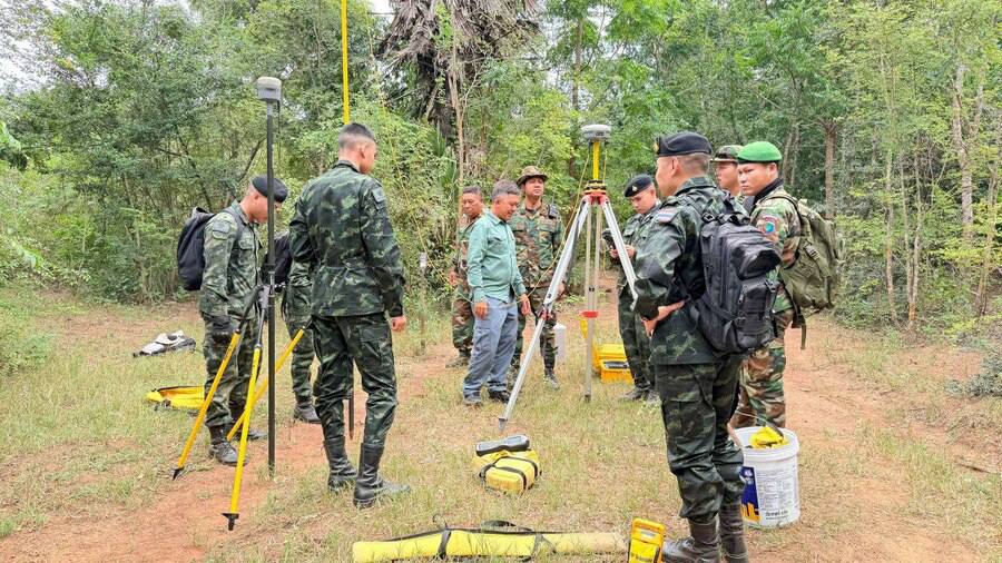 ការចុះ វាស់វែង និងបោះបង្គោលបណ្តោះអាសន្ននៅកំណាត់ខ្សែព្រំដែនចន្លោះបង្គោលលេខ ៤២ និងលេខ៤៧ ធ្វើឡើងតាមស្មារតីនៃកិច្ចប្រជុំគណៈកម្មការចម្រុះខណ្ឌសីមាព្រំដែន (JBC) កម្ពុជា-ថៃ កាលពីថ្ងៃទី២១-២២ ខែតុលា ឆ្នាំ២០២៥ កន្លងទៅ៕