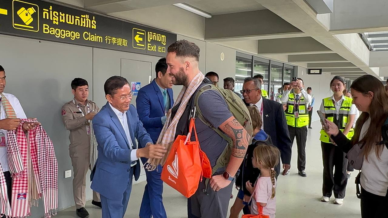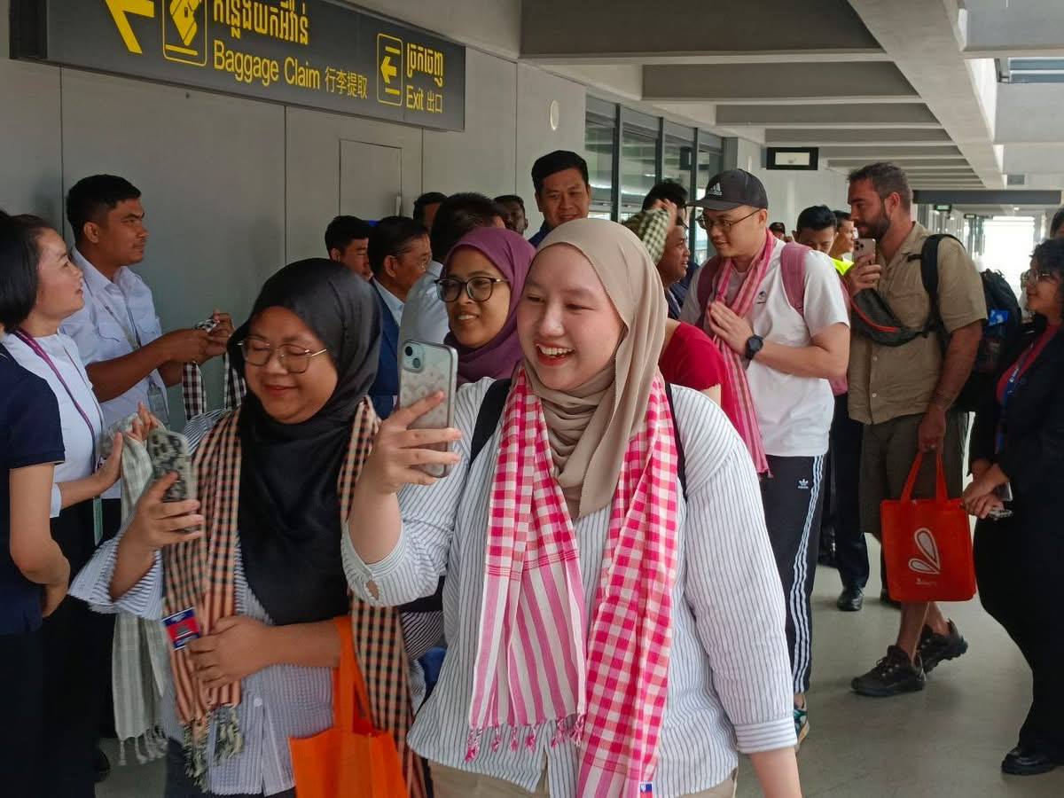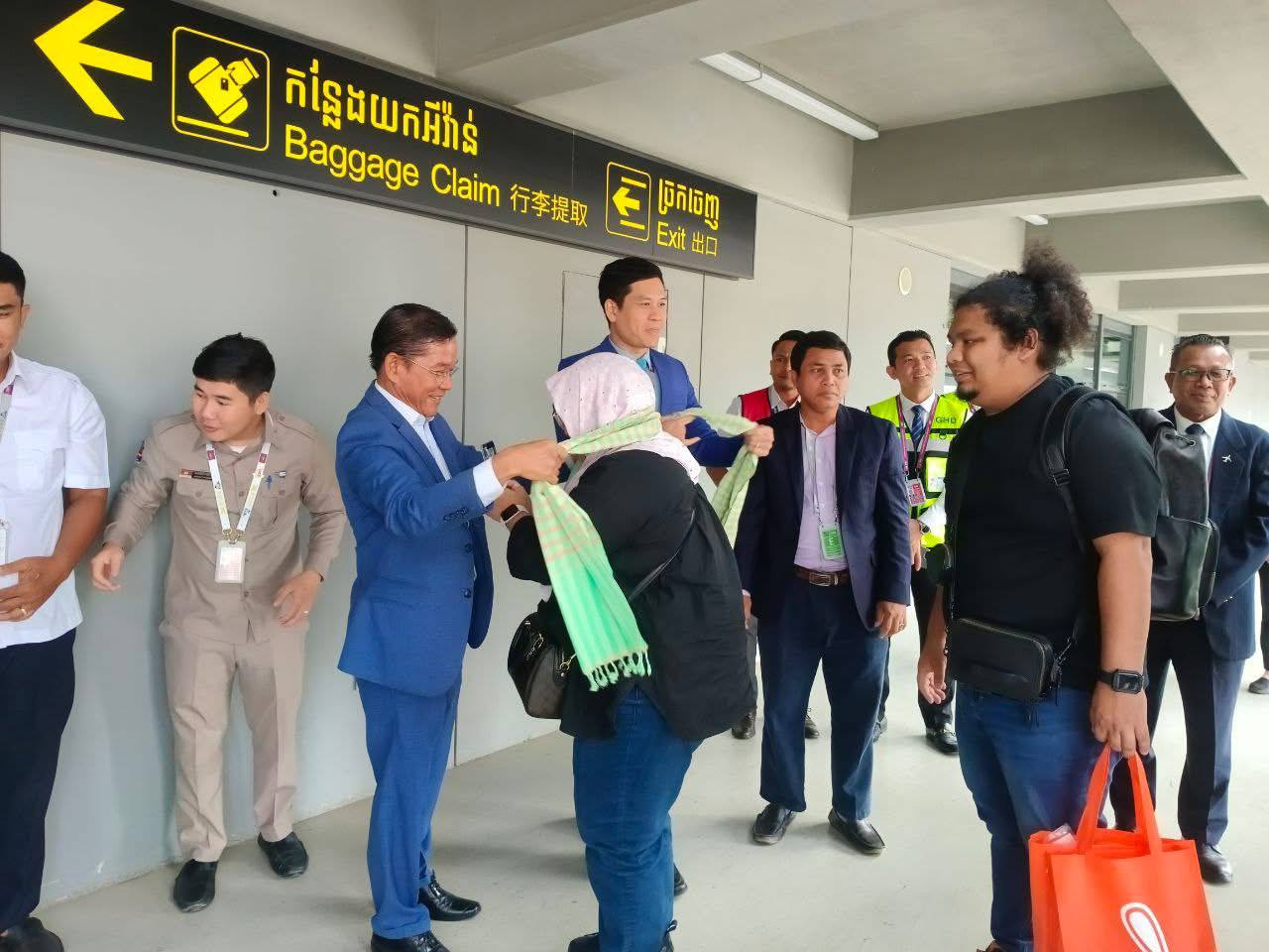 សៀមរាប៖ តាមចង្អុលបង្ហាញផ្ទាល់ពី លោក ហួត ហាក់ រដ្ឋមន្ត្រីក្រសួងទេសចរណ៍ មន្ទីរទេសចរណ៍ខេត្តសៀមរាប បានអញ្ជើញរៀបចំពិធីទទួលស្វាគមន៍ដ៏កក់ក្តៅ ដល់អ្នកដំណើរ ចំនួន ១៥៧ នាក់ រួមទាំងស្ត្រី ៦៦ នាក់ ដែលបានធ្វើដំណើរតាមយន្តហោះរបស់ ក្រុមហ៊ុន Firefly មកដល់អាកាសយានដ្ឋានអន្តរជាតិសៀមរាប។