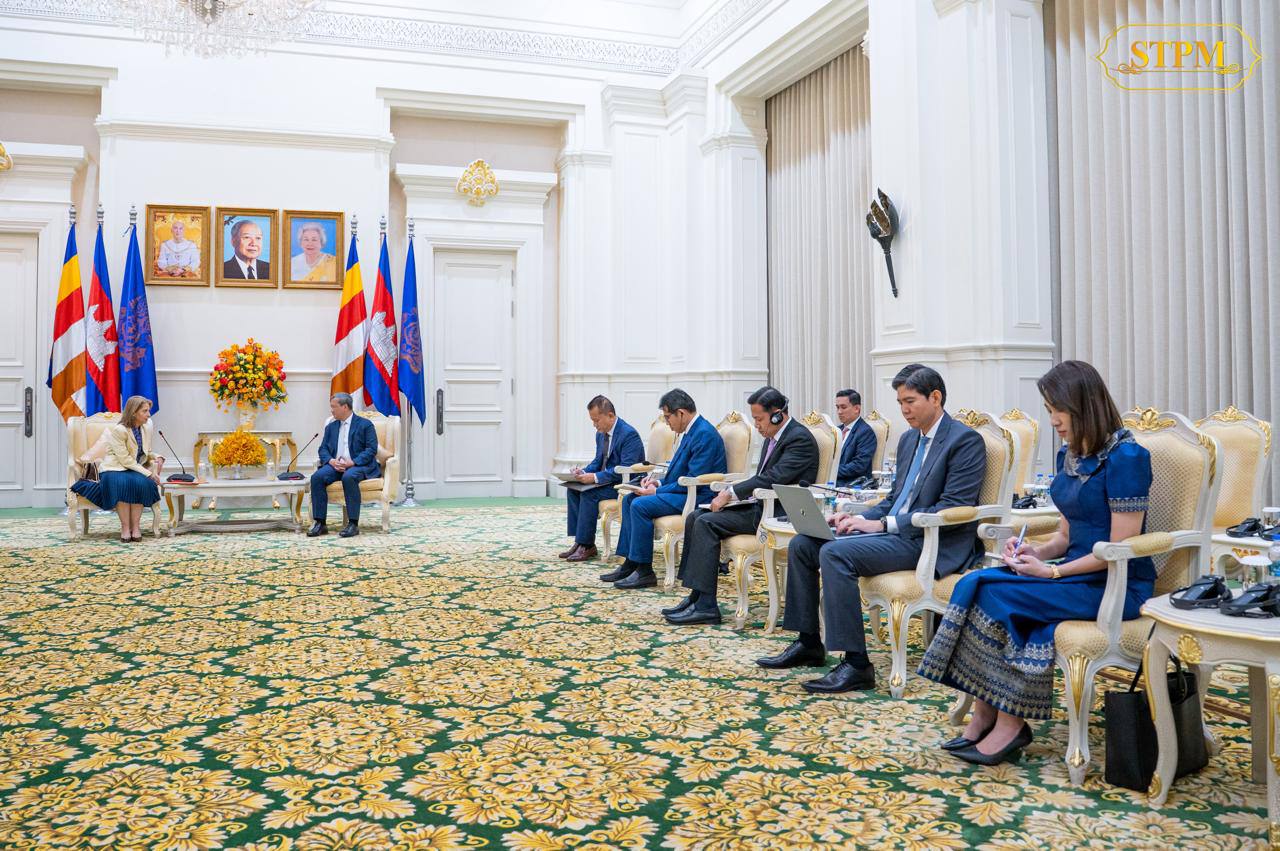 ជាការឆ្លើយតប, សម្ដេចបវរធិបតី បានស្វាគមន៍ និងសម្តែងក្តីរីករាយដែលបានជួបពិភាក្សាការងារជាមួយលោកជំទាវ ព្រមទាំងបានអបអរសាទរចំពោះលោកជំទាវ ដែលត្រូវបានតែងតាំងជាឯកអគ្គរដ្ឋទូតប្រេស៊ីលទី១ ប្រចាំកម្ពុជា។ សម្ដេចបវរធិបតី ក៏បានសម្តែងនូវការស្វាគមន៍យ៉ាងកក់ក្ដៅចំពោះការបើកស្ថានទូតទៅវិញទៅមក។ សម្ដេចបវរធិបតីមានជំនឿយ៉ាងមុតមាំថា ក្នុងអាណត្តិរបស់លោកជំទាវ ទំនាក់ទំនង និងកិច្ចសហប្រតិបត្តិការទ្វេភាគីនឹងកាន់តែរីកលូតលាស់ និង រឹងមាំ។ ទន្ទឹមនឹងនេះ សម្ដេចបវរធិបតី បានលើកទឹកចិត្តឱ្យលោកជំទាវបន្តផ្សារភ្ជាប់ទំនាក់ទំនងជាមួយក្រសួងស្ថាប័នពាក់ព័ន្ធកម្ពុជា ដើម្បីជំរុញឱ្យកិច្ចសហប្រតិបត្តិការ ឱ្យទទួលបានផ្លែផ្កាបន្ថែមទៀត។