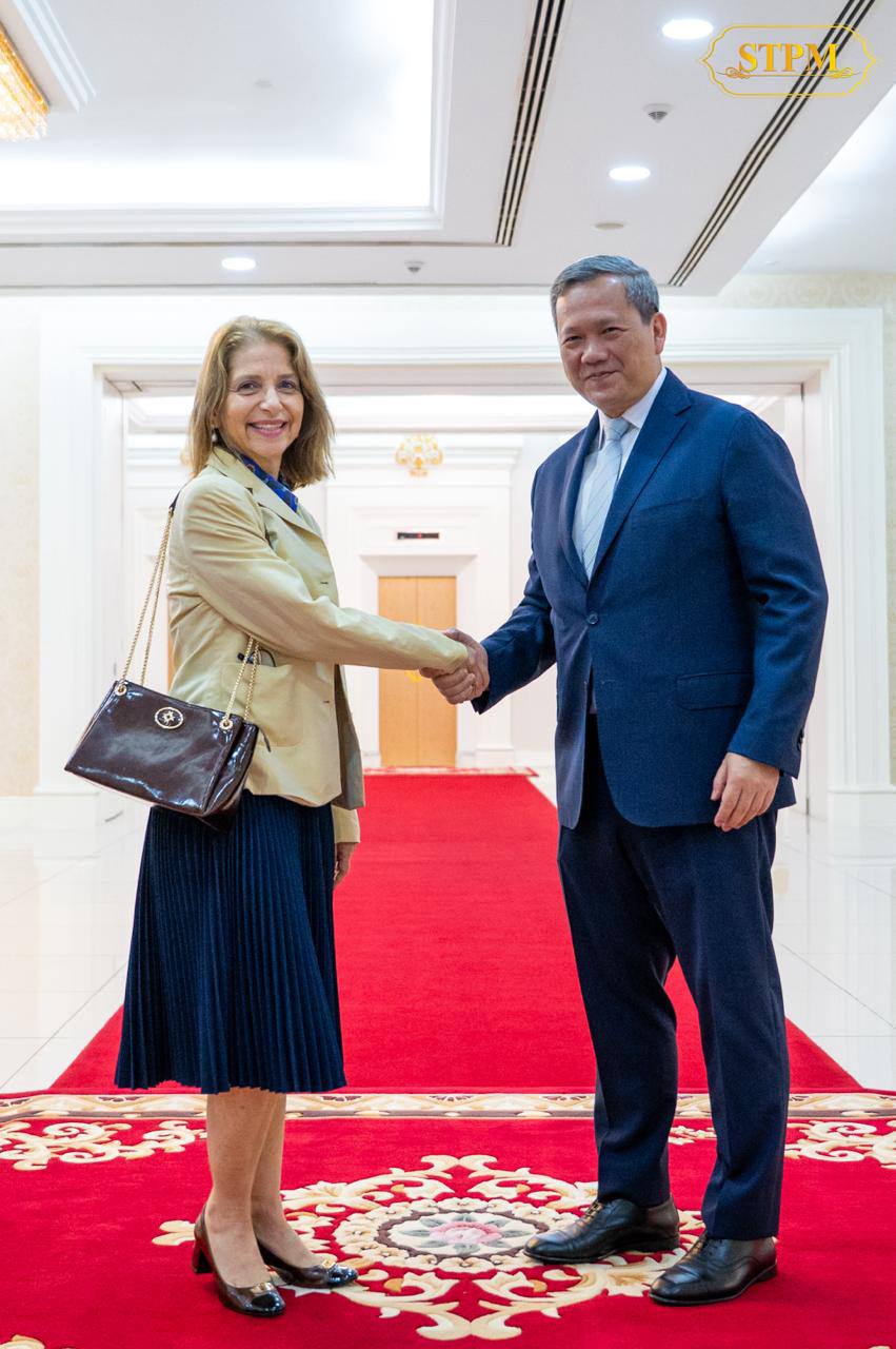នាព្រឹកថ្ងៃទី០២ ខែធ្នូ ឆ្នាំ២០២៥, សម្តេចមហាបវរធិបតី ហ៊ុន ម៉ាណែត នាយករដ្ឋមន្រ្តី នៃព្រះរាជាណាចក្រកម្ពុជា បានអនុញ្ញាតឱ្យ លោកជំទាវ វីវៀន ឡូស សាន់ម៉ាទីន (Vivian Loss Sanmartin) ឯកអគ្គរដ្ឋទូតនៃសាធារណរដ្ឋសហព័ន្ធប្រេស៊ីលប្រចាំកម្ពុជា ចូលជួបសម្តែងការគួរសម និងពិភាក្សាការងារ នៅវិមានសន្តិភាព។