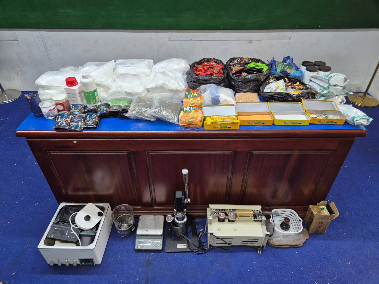 ជាមួយនឹងនេះ កម្លាំងបានចាប់យកឧបករណ៍ផលិត និងប្រើប្រាស់គ្រឿងញៀនជាច្រើន ដែលជាផ្នែកសំខាន់ក្នុងការកសាងបណ្តាញលួចផលិតគ្រឿងញៀន។