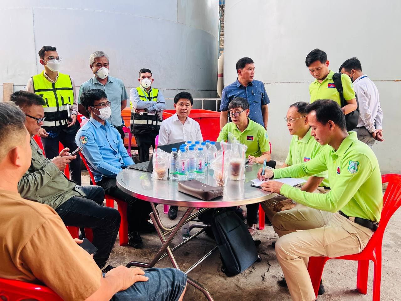 ភ្នំពេញ៖ មន្រ្តីក្រុមការងារអធិការកិច្ច នៃអគ្គនាយកដ្ឋានគាំពារបរិស្ថាន នៃក្រសួងបរិស្ថាន ដឹកនាំដោយលោក ចាប យុធី អនុប្រធាននាយកដ្ឋាន ដោយមានការចូលរួមពី ក្រសួងឧស្សាហកម្ម វិទ្យាសាស្ត្រ បច្ចេកវិទ្យា និងនវានុវត្តន៍ ក្រសួងការងារ បណ្តុះបណ្តាលវិជ្ជាជីវៈ មន្ទីរបរិស្ថានរាជធានីភ្នំពេញ រដ្ឋបាលខណ្ឌពោធិ៍សែនជ័យ និងអាជ្ញាធរមូលដ្ឋាន នៅថ្ងៃទី០២ ខែធ្នូ ឆ្នាំ២០២៥ បានធ្វើការចុះត្រួតពិនិត្យ ករណី ធ្លាយឧស្ម័នអាម៉ូញាក់ នៅក្នុងទីតាំងរោងចក្រ ផលិតទឹកកក «ឆេង សុភារី» ស្ថិតនៅភូមិត្រពាំងថ្លឹង៤ សង្កាត់ចោមចៅទី១ ខណ្ឌពោធិ៍សែនជ័យ រាជធានីភ្នំពេញ។