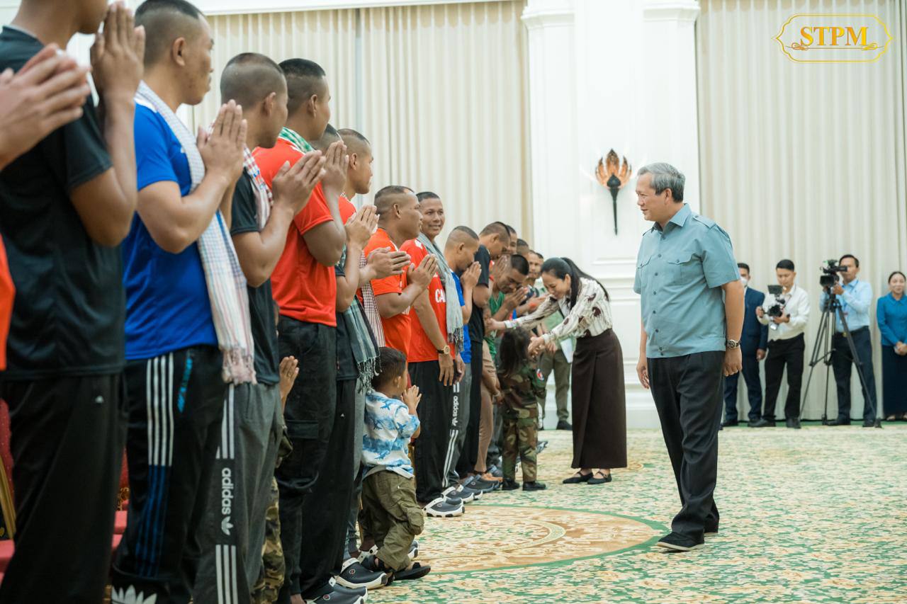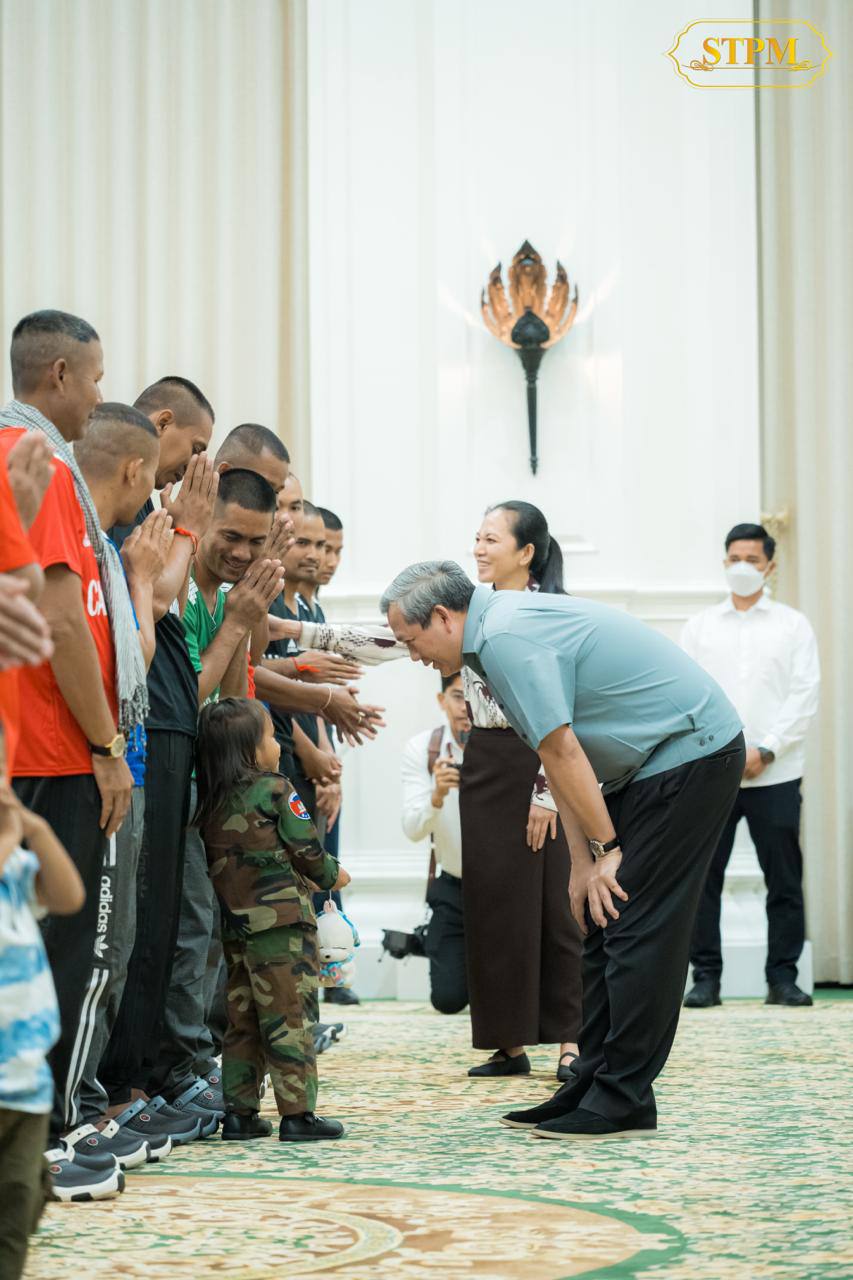 កាលពីរសៀលថ្ងៃទី៣១ ខែធ្នូ ឆ្នាំ២០២៥ ម្សិលមិញ គ្រាន់តែពួកគេបានមកដល់រាជធានីភ្នំពេញភ្លាម សម្តេចមហាបវរធិបតី ហ៊ុន ម៉ាណែត នាយករដ្ឋមន្ត្រីនៃព្រះរាជាណាចក្រកម្ពុជា និងលោកជំទាវបណ្ឌិត ពេជ្រ ចន្ទមុនី ហ៊ុន ម៉ាណែត ក៏បានទទួលស្វាគមន៍យោធិនទាំងអស់ និងក្រុមគ្រួសាររបស់ពួកគេយ៉ាងរាក់ទាក់កក់ក្តៅបំផុតនៅឯវិមានសន្តិភាព។