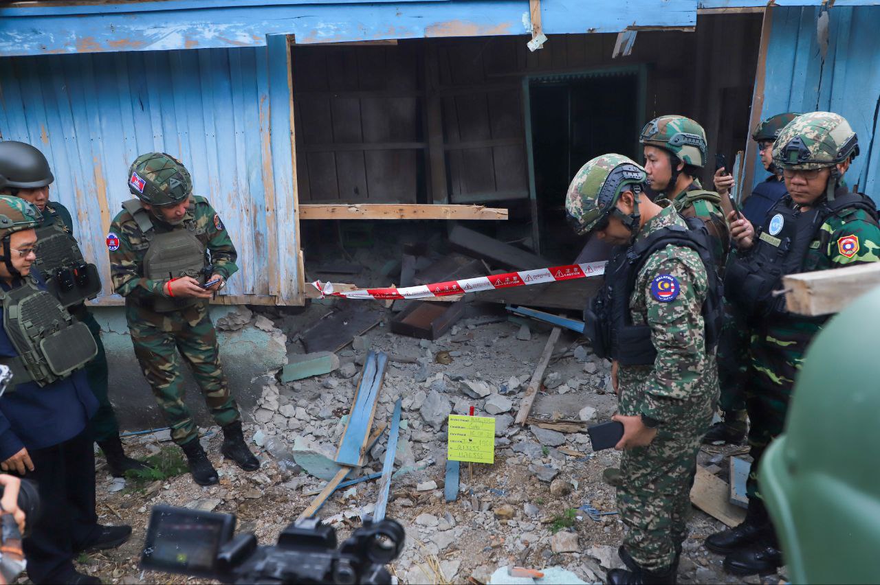 ជាក់ស្តែង កាលពីព្រឹកថ្ងៃទី២១ ខែមករា ឆ្នាំ២០២៦ ក្រុមសម្របសម្រួល (CLG) នៃព្រះរាជាណាចក្រកម្ពុជា បានសម្របសម្រួលជូនដល់ក្រុមអ្នកសង្កេតការណ៍អាស៊ាន (AOT) ចុះសង្កេតការណ៍ ផ្ទៀងផ្ទាត់ និងរាយការណ៍អំពីស្ថានភាពព្រំដែននៅភូមិសាស្រ្តស្រុកសំពៅលូន និងស្រុកភ្នំព្រឹក ក្នុងខេត្តបាត់ដំបងនៅក្នុងអំឡុងពេលនៃការអនុវត្តបទឈប់បាញ់។ ក្រុមអ្នកសង្កេតការណ៍អាស៊ានក៏បានចុះទៅពិនិត្យមើលទីតាំងស៊ីវិលនិងហេដ្ឋារចនាសម្ព័ន្ធស៊ីវិល ក្នុងនោះរួមមានលំនៅដ្ឋានរបស់ប្រជាពលរដ្ឋ និងមន្ទីរពេទ្យបង្អែក ដែលត្រូវរងការខូចខាតយ៉ាងធ្ងន់ធ្ងរដោយសារការវាយប្រហាររបស់យោធាថៃកាលពីខែធ្នូ ឆ្នាំ២០២៥។