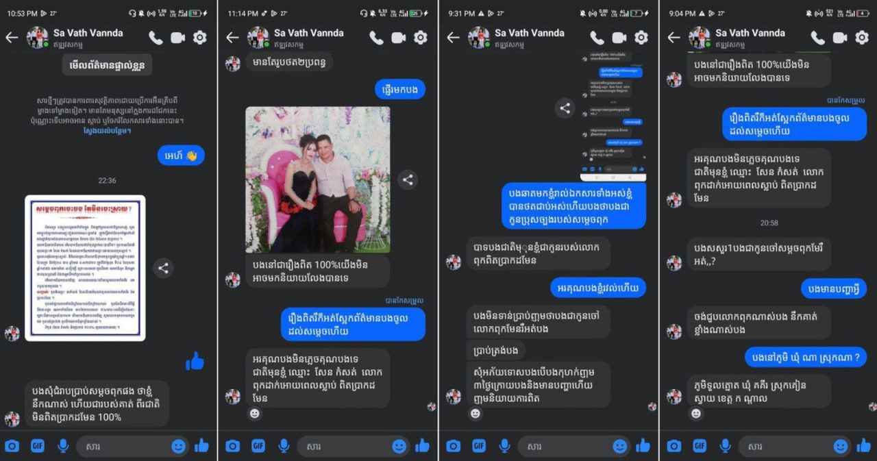 ករណីចុងក្រោយហាក់ដូចធ្ងន់បន្តិចមានទាំងអត្ថបទមានទាំងសារឆ្លើយឆ្លងជាមួយមនុស្សដែលស្គាល់telegram