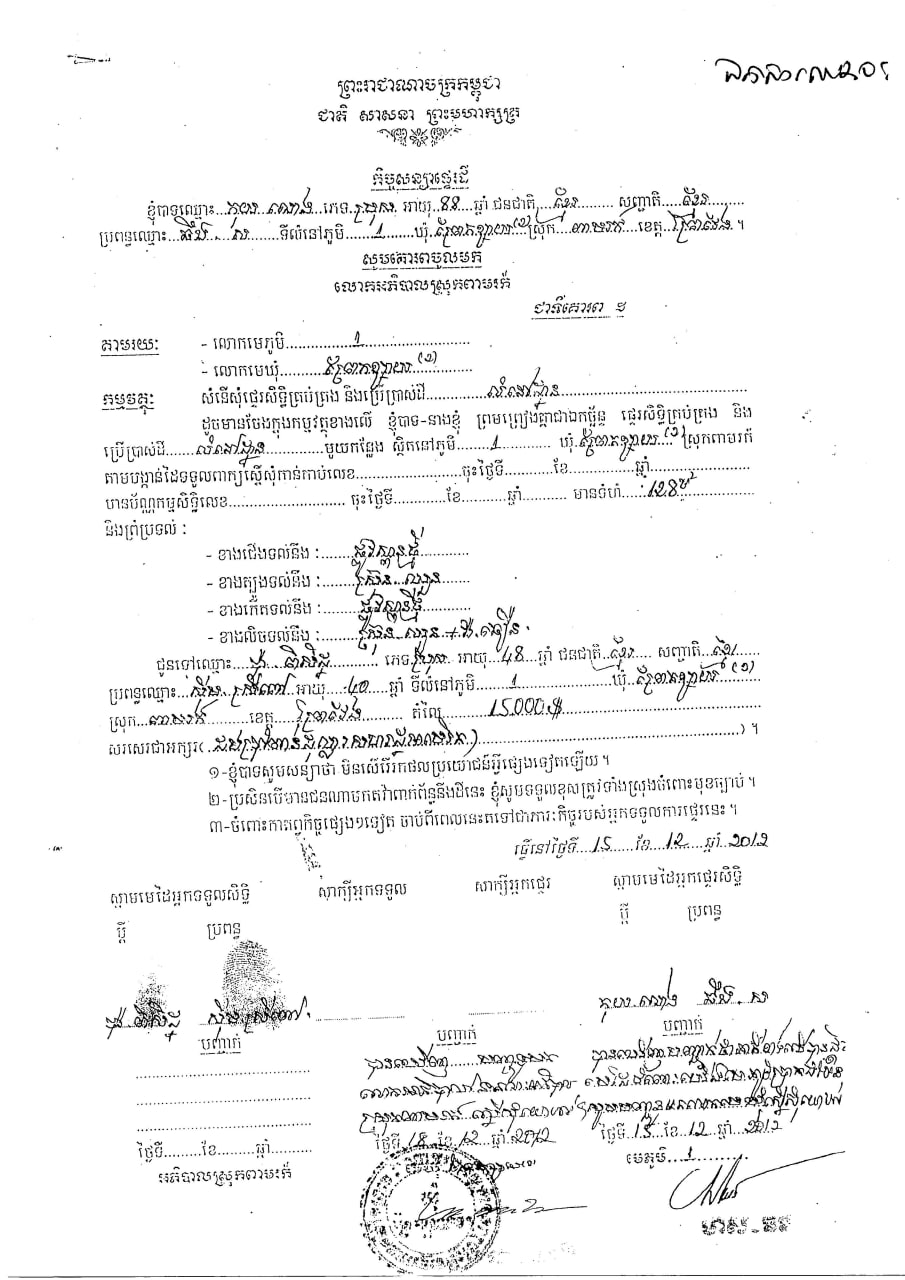 ក្រោយមក លោក ស្រ៊ុន ឈួន បានស្នើសុំធ្វើប័ណ្ណកម្មសិទ្ធិដី ក៏ប៉ុន្តែការបិទផ្សាយជាសាធារណៈនូវឯកសារនៃការវិនិច្ឆ័យនៅស្រុកពាមរក៏ នៅថ្ងៃទី១១ ខែកុម្ភៈ ឆ្នាំ២០១៦ ត្រូវបានភាគីដើមចោទអះអាងថា «មានភាពមិនប្រក្រតី»។ ទើបភាគីដើមចោទបានជំទាស់ និងដាក់ពាក្យបណ្តឹងទៅសាលាដំបូងខេត្តព្រៃវែង នៅថ្ងៃទី០៨ ខែមករាឆ្នាំ២០១៦ ប៉ុន្តែក្រោយពីមានការទាញហេតុផលផ្ទាល់មាត់ និងស្នើសុំឱ្យមានការវាស់វែងជាក់ស្តែង ដើម្បីធ្វើការបញ្ជាក់ទៅលើទិន្នន័យនៃការបិទផ្សាយ នៅថ្ងៃទី១១ ខែកុម្ភៈ ឆ្នាំ២០១៦ ថាពិទជាត្រឹមត្រូវមែនទេ? ប៉ុន្តែត្រូវបានសាលាដំបូងបានច្រានចោលការទាមទារ ដោយប្រកាសសាលដីកាថ្ងៃទី២៨ ខែមេសា ឆ្នាំ២០១៦ កន្លងទៅ។
