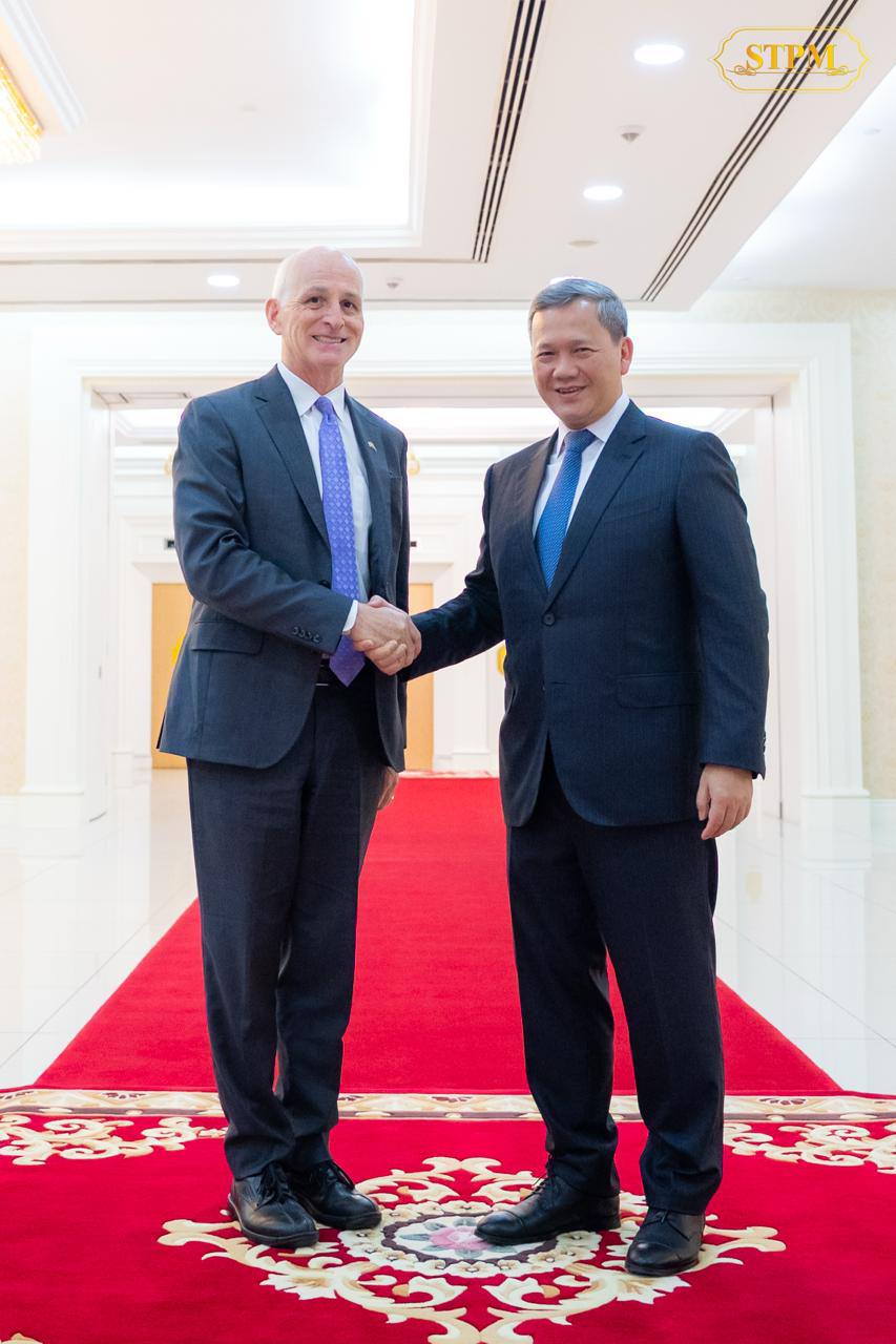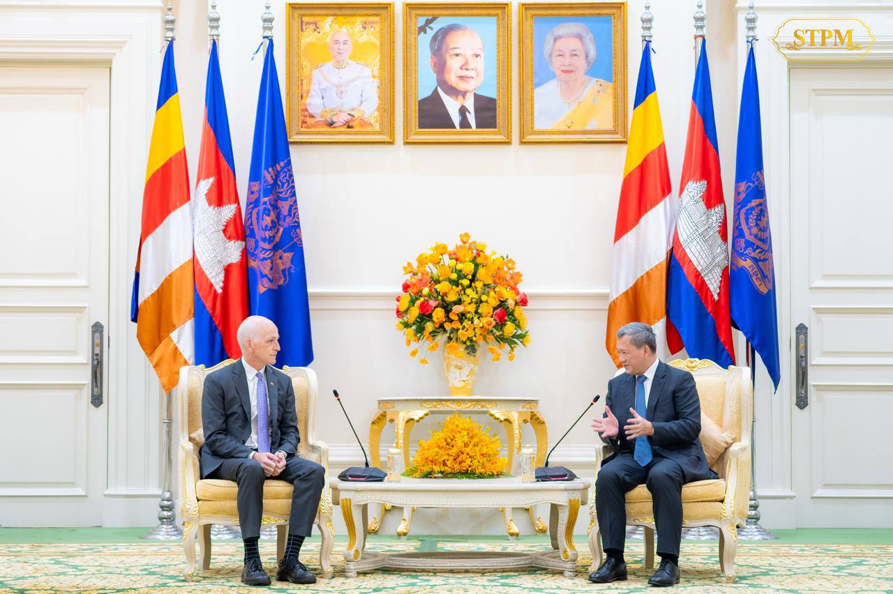 សម្តេចធិបតី ហ៊ុន ម៉ាណែត បានអនុញ្ញាតឱ្យគណៈប្រតិភូសភាសហរដ្ឋអាមេរិក ដឹកនាំដោយ លោក Adam Smith សមាជិកសភាប្រចាំរដ្ឋ Washington រួមដំណើរដោយ លោក Michael Baumgartner សមាជិកសភាប្រចាំរដ្ឋ Washington និងលោកស្រី Chrissy Houlahan សមាជិកសភាប្រចាំរដ្ឋ Pennsylvania ចូលជួបសម្តែងការគួរសម និងពិភាក្សាការងារ នៅវិមានសន្តិភាព។