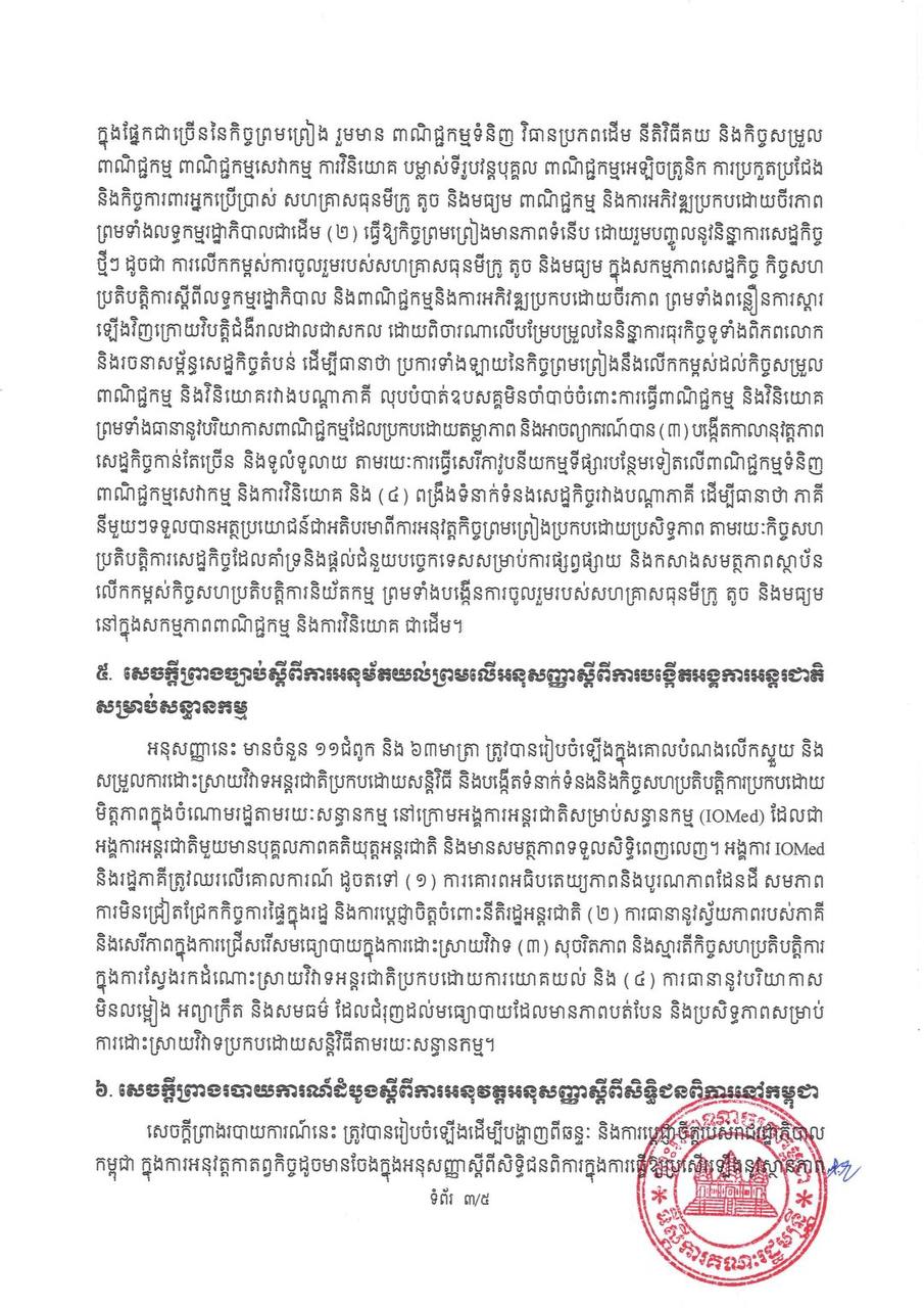 សម្តេចធិបតី ហ៊ុន ម៉ាណែត បានគូសបញ្ជាក់សារជាថ្មី អំពីគោលជំហរដ៏ម៉ឺងម៉ាត់របស់រាជរដ្ឋាភិបាលក្នុងការគោរពច្បាប់ អន្តរជាតិ ដើម្បីដោះស្រាយបញ្ហាព្រំដែនដោយសន្តិវិធី។ សម្តេចធិបតី បានគូសបញ្ជាក់ថា «បទពិសោធនៃសង្គ្រាមដ៏រ៉ាំរៃរបស់កម្ពុជាបានបង្ហាញថា “សង្គ្រាមមិនអាចបញ្ចប់ដោយការធ្វើសង្គ្រាមបានទេ” ពោលគឺមានតែការចរចា ដោយសន្តិវិធីប៉ុណ្ណោះដែលអាចរកដំណោះស្រាយបានប្រកបដោយសុខសន្តិភាព ដែលបង្កលក្ខណៈងាយស្រួល ឱ្យប្រជាពលរដ្ឋភៀសសឹកអាចវិលត្រឡប់ទៅកាន់ភូមិឋានរបស់ខ្លួនវិញ៕