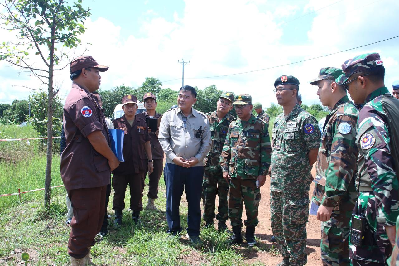 ក្រុមអ្នកសង្កេតការណ៍អន្តរកាល (IOT) ពិនិត្យទីតាំងជាក់ស្តែង ដែលរងផលប៉ះពាល់តាមរយៈការប្រើប្រាស់យន្តហោះចម្បាំងទំលាក់គ្រាប់ MK-84 នៅតំបន់ភូមិថ្មដូន ឃុំគោកមន