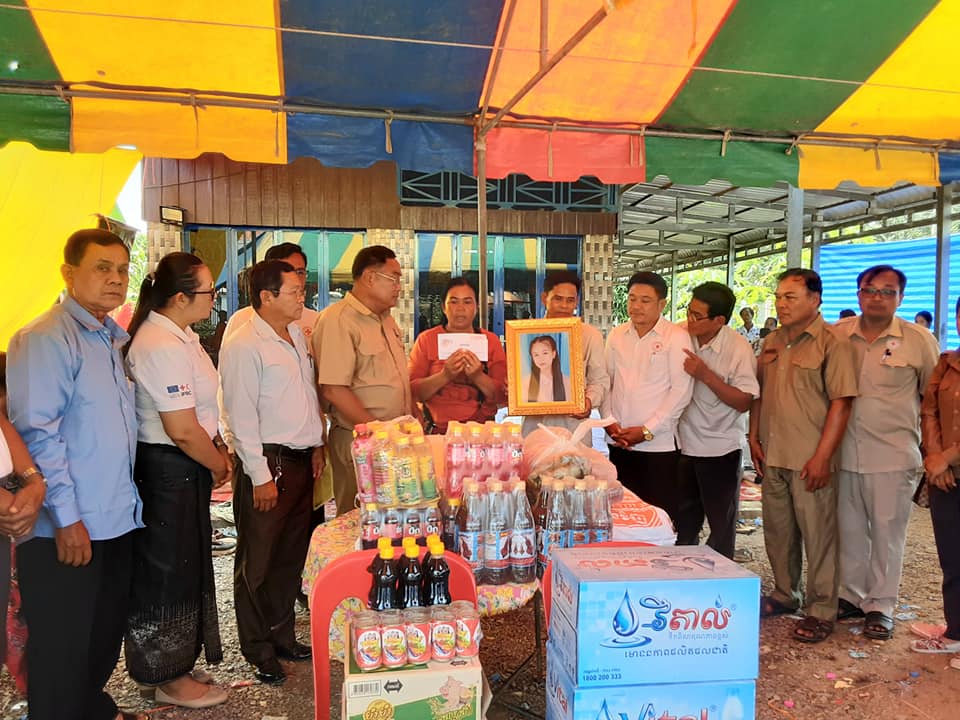 គ្រួសារសពស្លាប់ដោយលង់ទឹកបានទទួលអំណោយមនុស្សធម៌ពីសាខាកក្រកខេត្ត