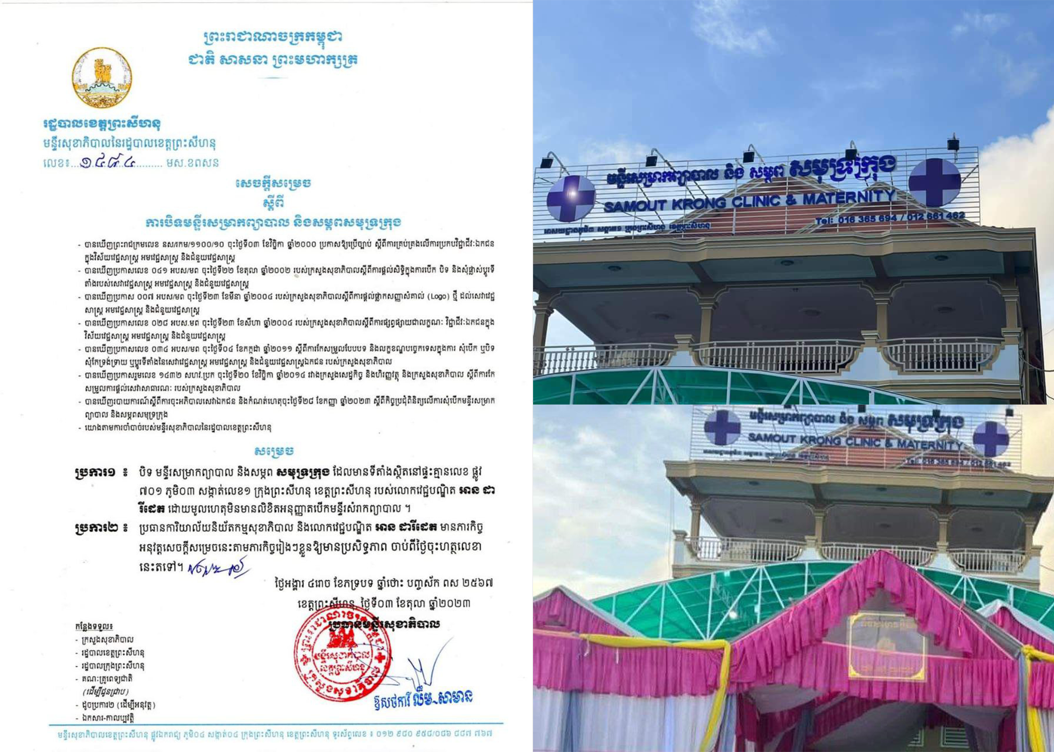 មន្ទីសុខាភិបាលខេត្តព្រះសីហនុ បិទមន្ទីរសម្រាកព្យាបាល និងសម្ភព “សមុទ្រក្រុង” ដែលគ្មានលិខិតអនុញ្ញាត
