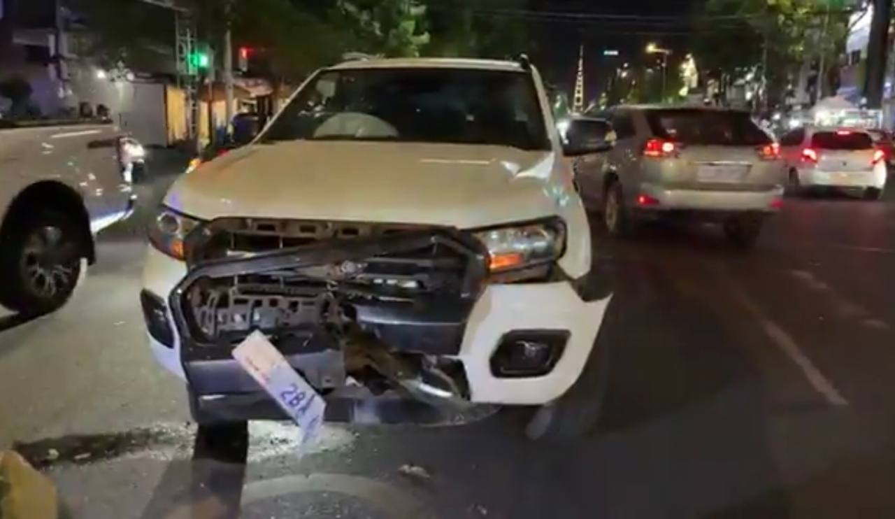 រថយន្តFordបេីកបុករបាំងថ្មពុះចែកទ្រូងផ្លូវរងការខូចខាត