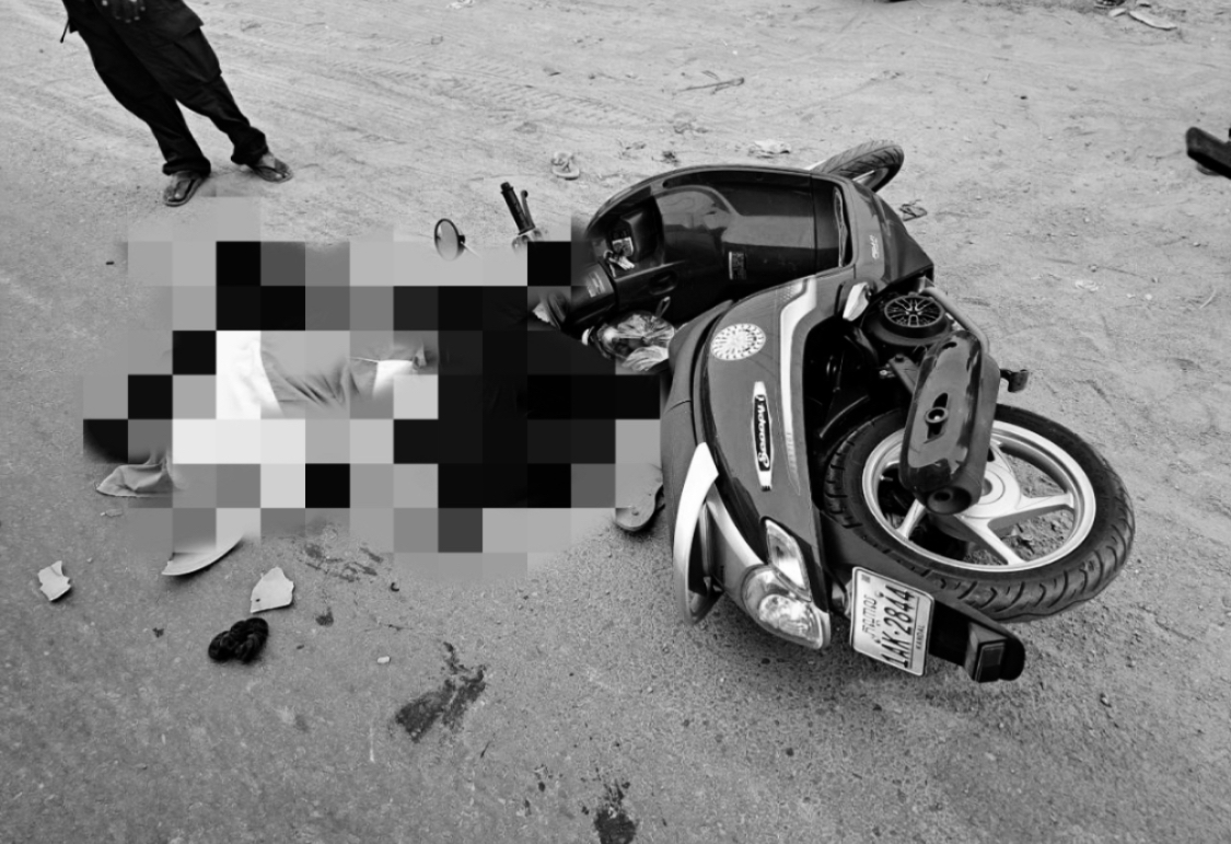រថយន្តកុងតឺន័របេីកកៀរស្ត្រីម្នាក់កំពុងជិះម៉ូតូបណ្ដាលឱ្យដួលរួចកិនបែកក្បាលស្លាប់ភ្លាមមួយរំពេច