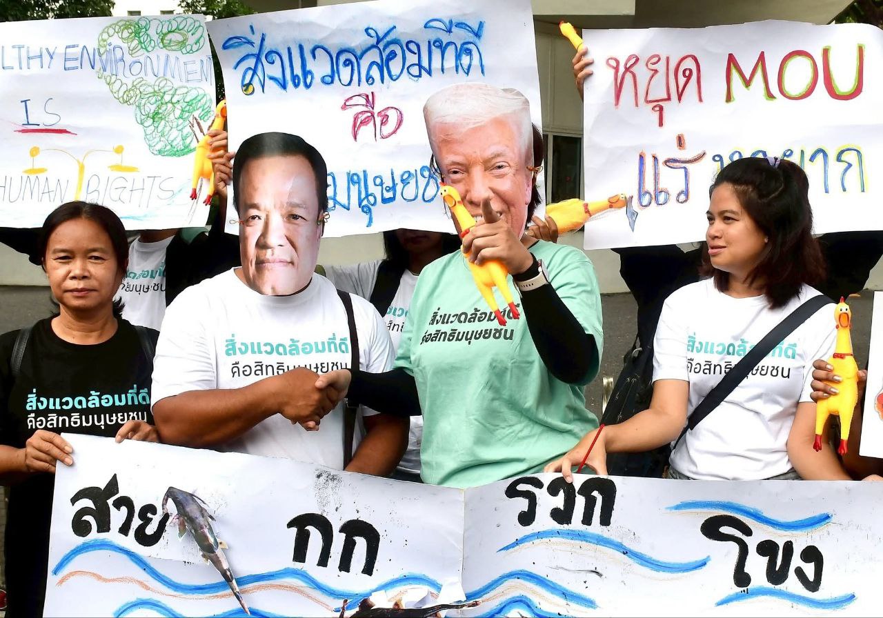 ផ្ទុះការប្រតិកម្មកក្រើកប្រទេសថៃជាថ្មី! ក្រុមអ្នកតវ៉ាបានប្រមូលផ្តុំគ្នានៅមុខស្ថានទូតអាមេរិកក្នុងទីក្រុងបាងកក ប្រឆាំងនឹង MOU រវាងសហរដ្ឋអាមេរិក និងថៃ ដែលបានចុះហត្ថលេខាដោយនាយករដ្ឋមន្រ្តីថៃ