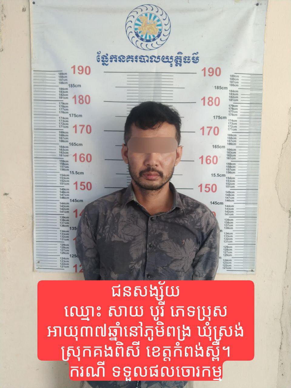 លោកអធិការបានឱ្យដឹងថា កាលយប់ថ្ងៃទី០៥ ខែតុលា ឆ្នាំ២០២៥ វេលាម៉ោង ២២និង១៥នាទី នៅតាមបណ្ដោយផ្លូវជាតិលេខ ៤១ ក្នុងភូមិចាស់ ឃុំព្រៃញាតិ ស្រុកគងពិសី មានករណីលួចដោយមានស្ថានទម្ងន់ទោស «កាប់ប្លន់យកម៉ូតូ» បង្កឡើងដោយជនសង្ស័យ ចំនួន ០២ នាក់ ប្រើប្រាស់អាវុធ (ដាវ២ដើម) មធ្យោបាយជិះម៉ូតូគ្មានស្លាកលេខតាមជនរងគ្រោះមកដល់មុខផ្ទះ ខណៈពេលបង្អង់ម៉ូតូបន្ថយល្បឿនចូលផ្ទះ ស្រាប់តែជនសង្ស័យទាញដាវកាប់បណ្តាលឱ្យរងរបួសរួចប្លន់យកម៉ូតូតែម្ដង។ ប៉ុន្តែ ស្របពេលកម្លាំងនគរបាលកំពុងចុះល្បាតតាមគោលដៅសំខាន់ៗ ប្រទះឃើញមុខសញ្ញាសង្ស័យបានស្ទាក់ឃាត់បាន ចំនួន ០២នាក់ រួមមាន ទី១៖ ឈ្មោះ ហែល បញ្ញា ភេទប្រុស អាយុ ២៦ឆ្នាំ នៅភូមិកំណប់ ឃុំត្បែង ស្រុកកណ្ដាលស្ទឹង ខេត្តកណ្ដាល និងទី២៖ ឈ្មោះ ផន ពេជ្រ ភេទប្រុស អាយុ ២៧ឆ្នាំ នៅភូមិព្រៃតាលឹម ឃុំជង្រុក ស្រុកគងពិសី ខេត្តកំពង់ស្ពឺ។