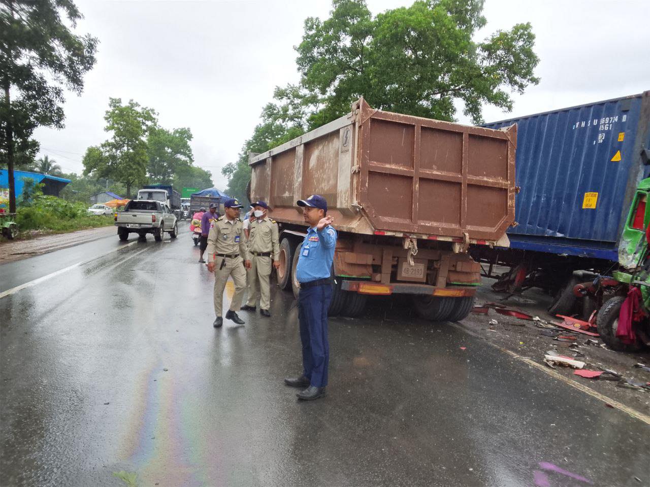 ករណីគ្រោះថ្នាក់ចរាចរណ៍រវាងរថយន្តនិងរថយន្តរួចជ្រុលទៅបុកកន្លែងលក់ភេសជ្ជៈលើចំណីថ្នល់ជាតិ មុនដំបូងរថយន្ត១គ្រឿង FUSO ពណ៌បៃតង ផ្លាកលេខភ្នំពេញ3D-0305 សណ្តោងសឺមីរ៉ឺម៉ក ពណ៌ខៀវ ផ្លាកលេខកណ្តាល4A-0282 អ្នកបើកបរមិនស្គាល់អត្តសញ្ញាណ(រត់គេចចេញពីកន្លែងកេីតហេតុ) បើកបរពីទិសខាងលិចទៅទិសខាងកើត បានបុករថយន្ត១គ្រឿង ម៉ាកSHACMAN ពណ៌ស ផ្លាកលេខភ្នំពេញ3G-7104 សណ្តោងសឺមីរ៉ឺម៉ក ពណ៌ស ផ្លាកលេខភ្នំពេញ4B-2193 បេីកបរដោយឈ្មោះ មោគ ព្រឹកឆៃលី ប្រុស ៣៧ឆ្នាំ នៅភូមិពពេល ឃុំខុនរ៉ង ស្រុកបរិបូណ៌ ខេត្តកំពង់ឆ្នាំង ដែលកំពុងបើកបរបញ្រ្ចាសទិសគ្នា បន្ទាប់មករថយន្តម៉ាកFUSO បានជ្រុលមកបុកកន្លែងលក់ភេសជ្ជៈ(បាំងឆ័ត្រ) របស់ឈ្មោះ ប៊ូ តុប ភេទប្រុស អាយុ៥៨ឆ្នាំ រស់នៅភូមិទី១ ឃុំត្រែងត្រយឹង ស្រុកភ្នំស្រួច បណ្តាលឲ្យគ្រោះថ្នាក់មនុស្ស និងខូចខាតសម្ភារៈតូប(ឆ័ត្រចំនួន៣ តុ១ ទូ១ ភេសជ្ជៈមួយចំនួន)