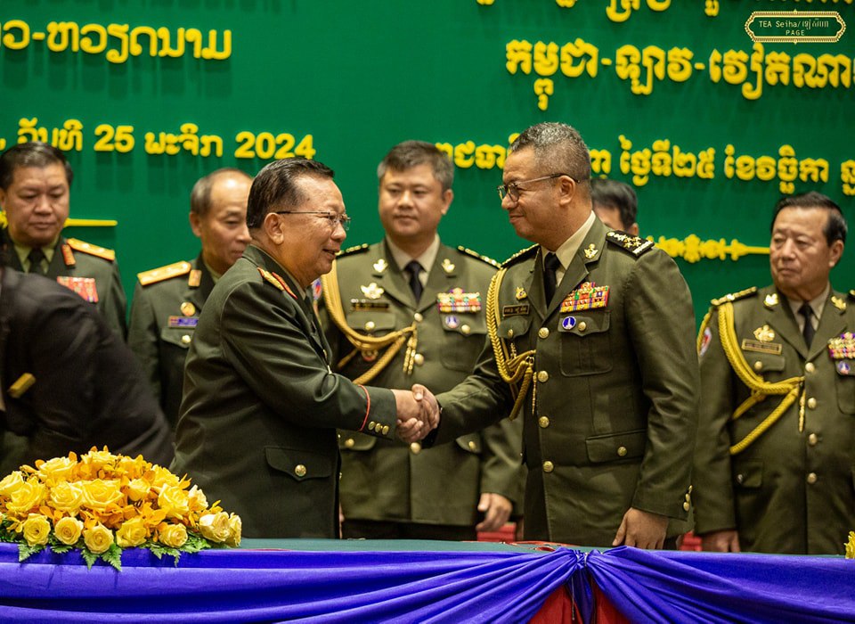 ភ្នំពេញ៖ នាយឧត្តមសេនីយ៍ ទៀ សីហា ឧបនាយករដ្ឋមន្រ្តី រដ្ឋមន្ត្រីក្រសួងការពារជាតិ នឹងអញ្ជើញចូលរួមកិច្ចប្រជុំជំនួបប្រាស្រ័យមិត្តភាពការពារជាតិ ថ្នាក់រដ្ឋមន្រ្តីការពារជាតិបីប្រទេស និងពិធីបិទ «លំហាត់ហ្វឹកហ្វឺនសង្គ្រោះគ្រោះមហន្តរាយរួមគ្នារវាងកងទ័ពបីប្រទេស កម្ពុជា-ឡាវ-វៀតណាម» ចាប់ពីថ្ងៃទី១៣ ដល់ថ្ងៃទី១៦ ខែតុលា ឆ្នាំ២០២៥ នៅរដ្ឋធានីវៀងច័ន្ទន៍ សាធារណរដ្ឋប្រជាធិបតេយ្យប្រជាមានិតឡាវ។