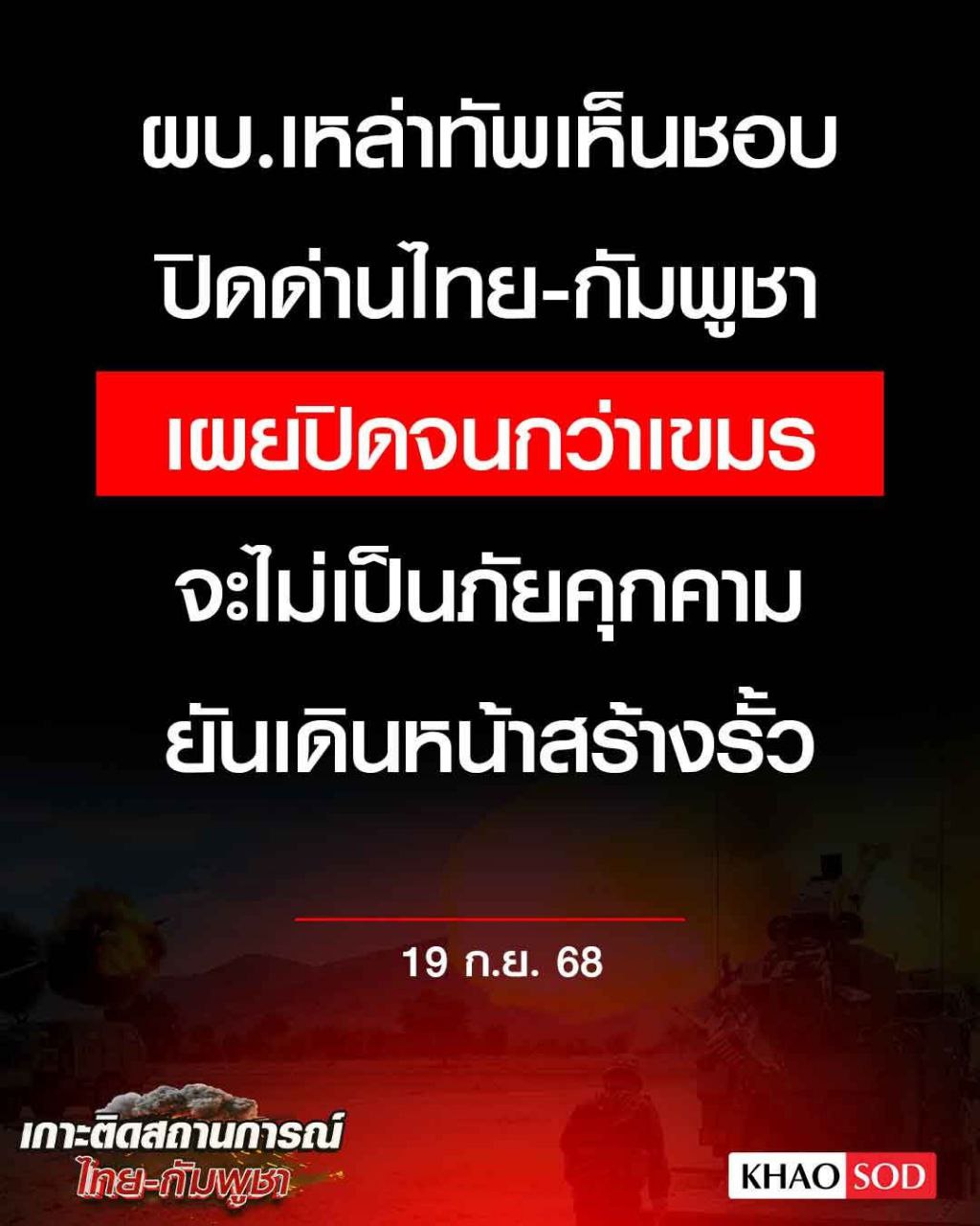 គួរបញ្ជាក់ថា កាលពីពេលកន្លងទៅ យោធាថៃបានសម្រេចបិទច្រកព្រំដែនជាមួយកម្ពុជាជាឯកតោភាគី ដោយមិនពិភាក្សាឬផ្ដល់ដំណឹងដល់កម្ពុជាមុនសូម្បីតែបន្តិច។
