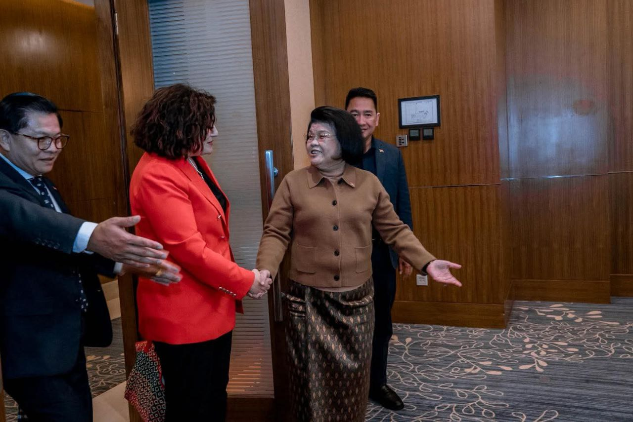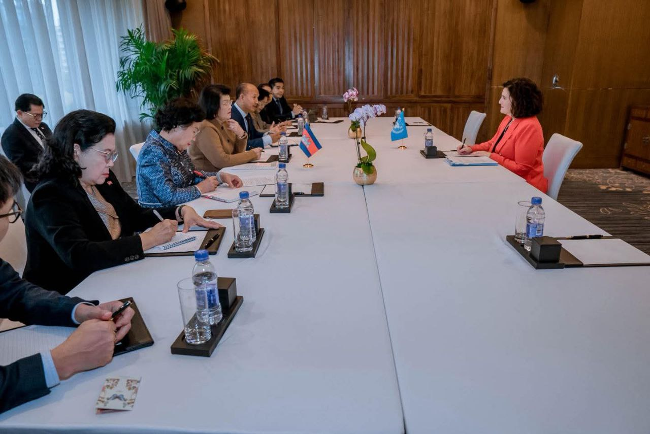 នៅក្នុងឱកាសចូលរួមកិច្ចប្រជុំថ្នាក់ដឹកនាំពិភពលោក ក្នុងទីក្រុងប៉េកំាង ប្រទេសចិន សម្តេចមហារដ្ឋសភាធិការធិបតី ឃួន សុដារី ប្រធានរដ្ឋសភានៃព្រះរាជាណាចក្រកម្ពុជា បានជួបពិភាក្សាការងារជាមួយ លោកស្រី គ្រីស្ទីន អារ៉ាប់ (Christine Arab) ប្រធានប្រចាំតំបន់ របស់អង្គការសហប្រជាជាតិសម្រាប់ស្រ្តី (UN Women) សម្រាប់តំបន់អាស៊ី និងប៉ាស៊ីហ្វិក នៅរសៀលថ្ងៃទី១២ ខែតុលា ឆ្នាំ២០២៥។