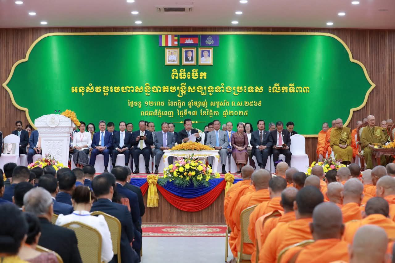 សូមជម្រាបថា នាព្រឹកថ្ងៃចន្ទ ទី១៧ ខែវិច្ឆិកា ឆ្នាំ២០២៥ សម្តេចតេជោ ហ៊ុន សែន ប្រធានព្រឹទ្ធសភា នៃព្រះរាជាណាចក្រកម្ពុជា និងជាប្រធានក្រុមឧត្តមប្រឹក្សាផ្ទាល់ព្រះមហាក្សត្រ ព្រះរាជតំណាងដ៏ខ្ពង់ខ្ពស់បំផុត ព្រះករុណាព្រះបាទ សម្ដេចព្រះបរមនាថ នរោត្ដម សីហមុនី ព្រះមហាក្សត្រនៃព្រះរាជាណាចក្រកម្ពុជា បានអញ្ជើញថ្លែងសន្ទរកថា ក្នុងពិធីបើក «អនុសំវច្ឆរមហាសន្និបាតមន្ត្រីសង្ឃទូទាំងប្រទេសលើកទី៣៣ ឆ្នាំ២០២៥» នៅវិទ្យាស្ថានជាតិអប់រំ៕