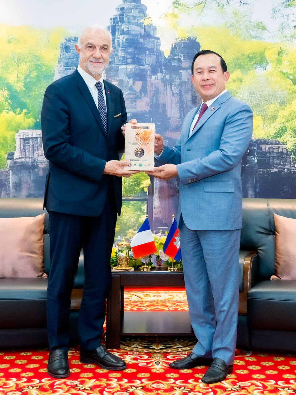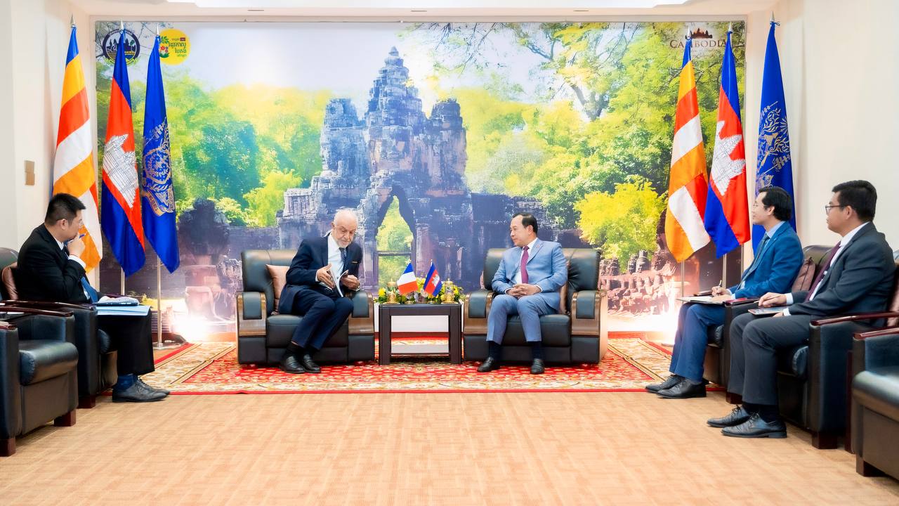 ភ្នំពេញ៖ នារសៀល ថ្ងៃទី១៩ ខែវិច្ឆិកា ឆ្នាំ២០២៥ លោក ហួត ហាក់ រដ្ឋមន្រ្តីក្រសួងទេសចរណ៍ បានអនុញ្ញាតជូនលោក Jean-Marie Cambacérès អតីតតំណាងរាស្រ្តបារាំង និងជាប្រធានសមាគម បារាំង-អាស៊ី ព្រមទាំងជាអ្នកនិពន្ធសៀវភៅអំពីព្រះករុណាព្រះបាទសម្ដេច ព្រះនរោត្តម សីហនុ “ព្រះបរមរតនកោដ្ឋ” ដ៏ល្បីនៅប្រទេសបារាំង ចូលជួបសម្តែងការគួរសម និងពិភាក្សាការងារលើការផ្សព្វផ្សាយសក្តានុពលទេសចរណ៍កម្ពុជា នៅទីស្តីការក្រសួង។