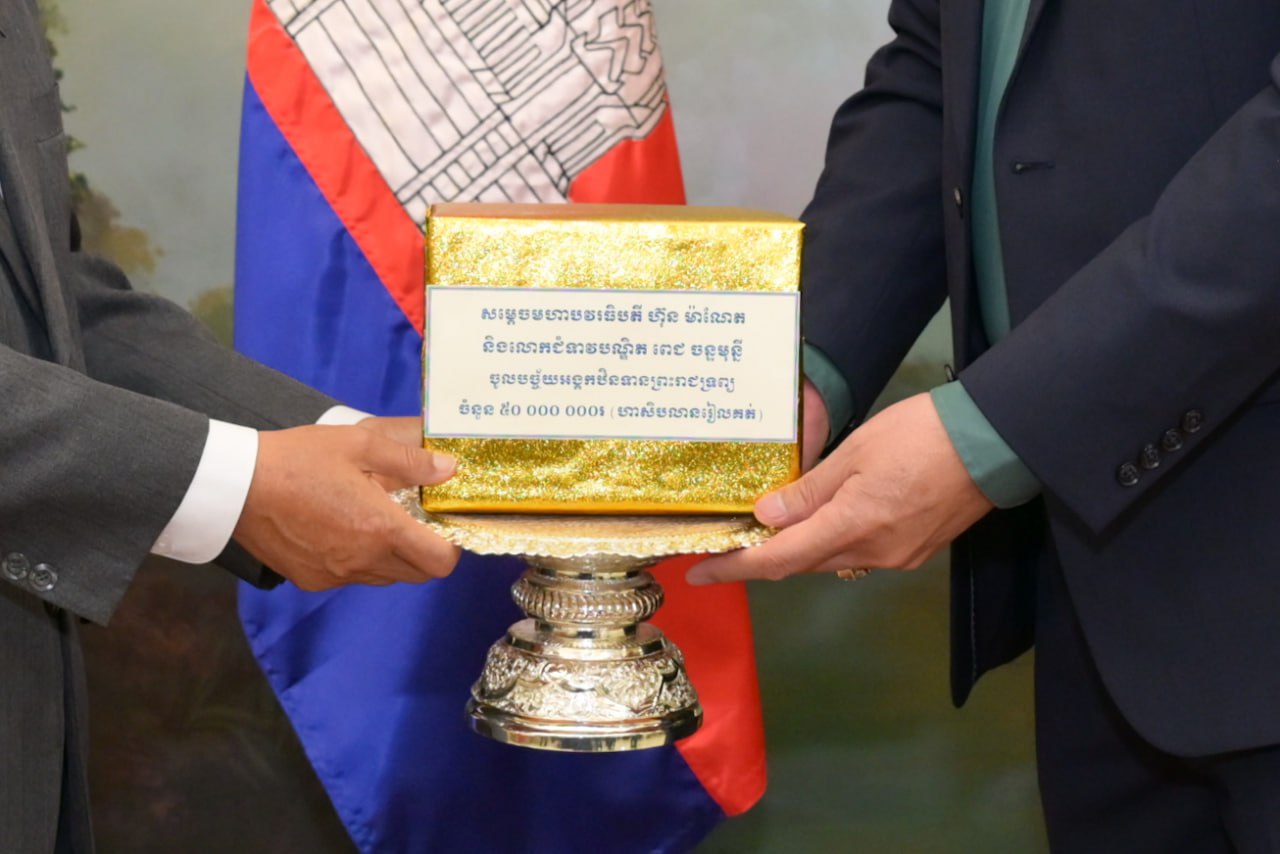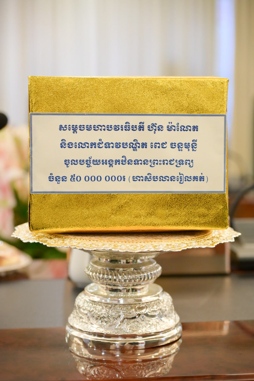 ភ្នំពេញ៖ នៅរសៀល ថ្ងៃទី០២ ខែតុលា ឆ្នាំ២០២៥ សម្តេចមហាមន្ត្រី គុយ សុផល ឧបនាយករដ្ឋមន្ត្រី រដ្ឋមន្ត្រីក្រសួងព្រះបរមរាជវាំង និងជាឧត្តមប្រឹក្សាផ្ទាល់ព្រះមហាក្សត្រ អញ្ជើញទទួលថវិកា ចំនួន ៥០ លានរៀល ដែលជាសទ្ធាដ៏ជ្រះថ្លារបស់សម្តេចមហាបវរធិបតី ហ៊ុន ម៉ាណែត នាយករដ្ឋមន្ត្រីនៃព្រះរាជាណាចក្រកម្ពុជា និងលោកជំទាវបណ្ឌិត ពេជ ចន្ទមុន្នី ហ៊ុន ម៉ាណែត។