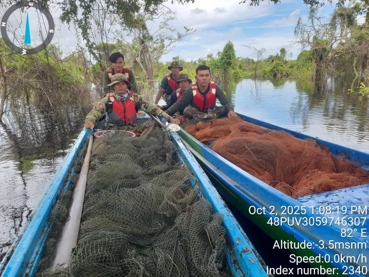 នៅយប់ថ្ងៃទី៣ ខែតុលា ឆ្នាំ២០២៥ វេលាម៉ោង២:៣០នាទីយប់ ឧត្តមសេនីយ៍ទោ សេង ធារិន ប្រធានគណៈបញ្ជាការដឹកនាំបង្រ្កាបបទលើ្មសនេសាទលើផ្ទៃបឹងទន្លេសាប បានចាត់តាំងកម្លាំងអង្គភាព ចំណុះយោធភូមិភាគទី៥ ដឹកនាំដោយវរសេនីយ៍ទោ ស វិបុល សហការជាមួយកម្លាំងតំបន់ប្រតិបត្តិការសឹករងកំពង់ឆ្នាំង និងកម្លាំងការិយាល័យទី២ កងទ័ពជើងគោក ចុះប្រតិបត្តិការបង្រ្កាបការជួញដូរ និងដឹកលៀសដោយខុសច្បាប់ ចំនួន ៣០តោន ស្ថិតនៅក្នុងភូមិសាស្រ្តស្រុកស្ទោង ខេត្តកំពង់ធំ។