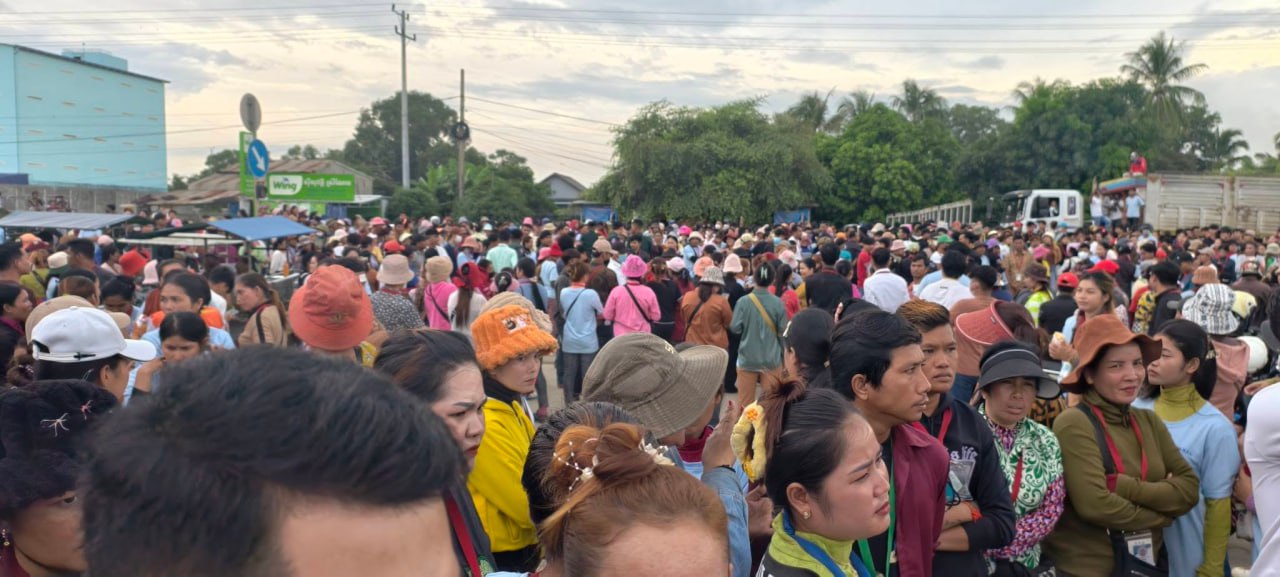 កំពង់ស្ពឺ៖ កម្មករ-កម្មការិនី រាប់ពាន់នាក់ បម្រើការងារនៅរោងចក្រ (តារ៉ាល់) Taral មានទីតាំងស្ថិតនៅតាមបណ្តោយផ្លូវជាតិលេខ ៣ ចំណុច គីឡូម៉ែរលេខ៤៦ ក្នុងឃុំស្នំក្រពើរ ស្រុកគងពិសី ខេត្តកំពង់ស្ពឺ បន្តធ្វើការតវាទាមទាឱ្យថៅកែរោងចក្រគោរពលក្ខខ័ណ្ឌការងារ និងផ្តល់អត្ថប្រយោជន៍មួយចំនួនដល់បងប្អូនកម្មករ ដែលភាគីរោងចក្រមិនទាន់អនុវត្តស្របតាមច្បាប់ការងារ។