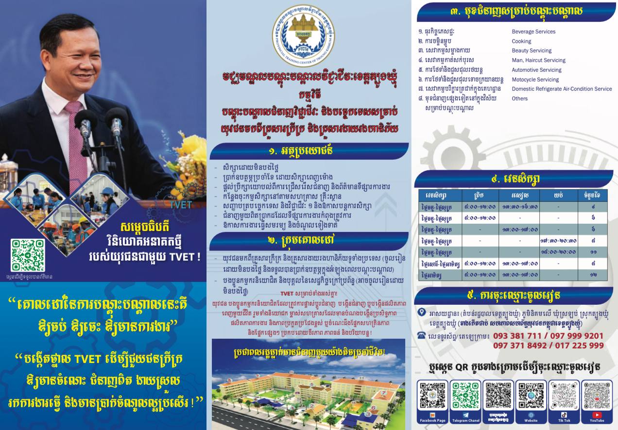 មុខជំនាញទាំង៧ នោះ រួមមាន ធុរកិច្ចភេសជ្ជៈ, ការចម្អិនម្ហូប, សេវាកម្មសម្អាងកាយ, សេវាកម្មកាត់សក់បុរស, ការថែទាំ និងជួសជុលរថយន្ត, ការថែទាំ និងជួសជុលទោចក្រយានយន្ត, និងសេវាកម្មបរិក្ខារត្រជាក់ក្នុងគេហដ្ឋាន។ ការសិក្សាវគ្គថ្មី នឹងចាប់ផ្តើមថ្ងៃទី០១ ខែធ្នូ ឆ្នាំ២០២៥។