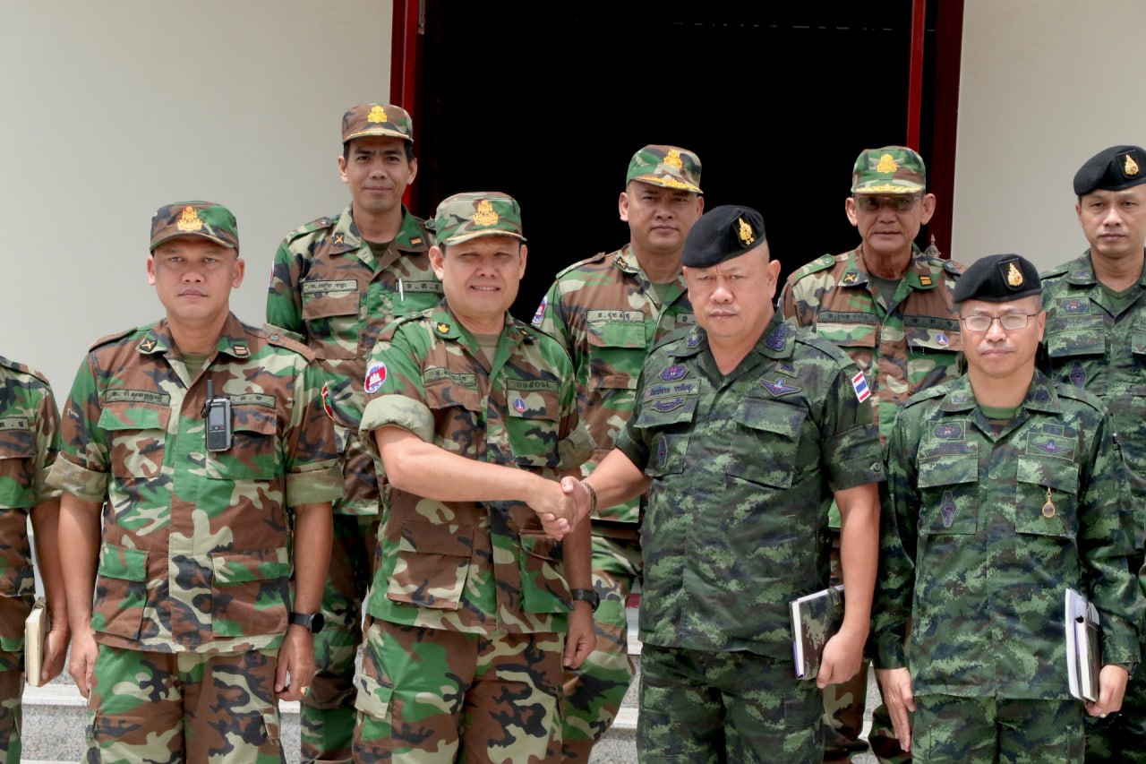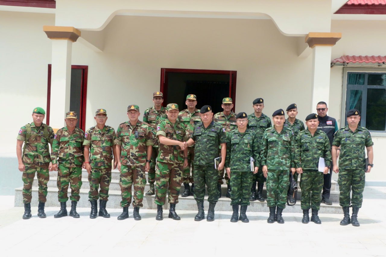ភ្នំពេញ៖ លោកស្រីឧត្តមសេនីយ៍ឯក ម៉ាលី សុជាតា អ្នកនាំពាក្យក្រសួងការពារជាតិកម្ពុជា នារសៀលថ្ងៃទី០៣ ខែតុលា ឆ្នាំ២០២៥នេះ បានឱ្យដឹងថា ក្រុមលេខានៃគណៈកម្មាធិការព្រំដែនថ្នាក់យោធភូមិភាគ កម្ពុជា-ថៃ (RBC) គឺយោធភូមិភាគទី៤ ភាគីកម្ពុជា និងយោធភូមិភាគទី២ ភាគីថៃ បានជួបប្រជុំគ្នាក្នុងសាលប្រជុំក្រុមទំនាក់ទំនងកម្ពុជា-ថៃ ច្រកអន្តរជាតិអូរស្មាច់ ខេត្តឧត្តរមានជ័យ នៅព្រឹកថ្ងៃទី៣ ខែតុលា ឆ្នាំ២០២៥។