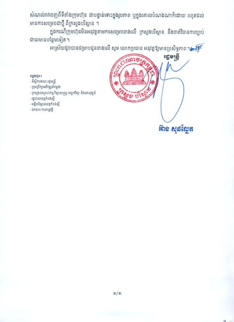 ក្នុងករណី ក្រុមហ៊ុនមិនអនុវត្តតាមវិធានការខាងលើ ក្រសួងបរិស្ថាន នឹងចាត់វិធានការច្បាប់ជាធរមាន និងផ្អាកផលិតកម្មជាបណ្តោះអាសន្ន៕