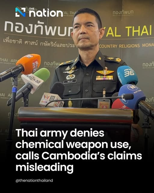 ថៃ៖ កងទ័ពថៃបានបដិសេធ ចំពោះការចោទប្រកាន់ថា ខ្លួនបានប្រើអាវុធគីមី ដោយបញ្ជាក់ថា កម្ពុជាបានបំភ្លៃការពិតដើម្បីបង្កើតការយល់ច្រឡំរបស់សាធារណជន និងដើម្បីសុំមូលនិធិអន្តរជាតិ។ នេះបើតាមការចេញផ្សាយពីកាសែតថៃ The Nation នៅថ្ងៃទី២០ តុលា ឆ្នាំ២០២៥។