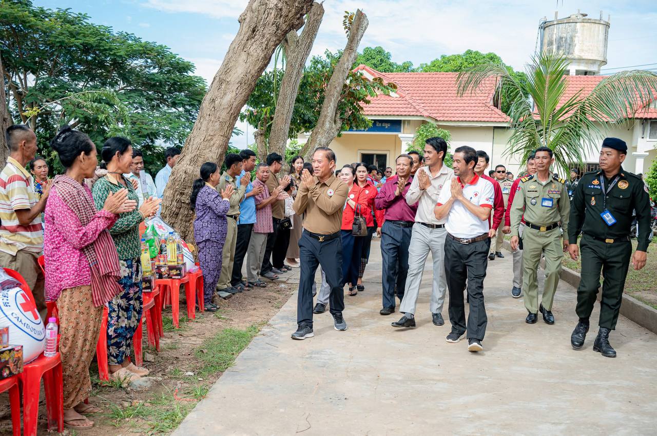 តាកែវ៖ នាព្រឹកថ្ងៃសៅរ៍ ទី០១ ខែវិច្ឆិកា ឆ្នាំ២០២៥ ឯកឧត្តម វ៉ី សំណាង អភិបាលខេត្ត និងប្រធានគណៈកម្មាធិការ សាខាកាកបាទក្រហមកម្ពុជា ខេត្តតាកែវ រួមជាមួយ ឯកឧត្តម លោកជំទាវ លោក លោកស្រី សមាជិក សមាជិការ គណៈកម្មាធិការសាខាកាកបាទក្រហមខេត្ត ស្រុក បាននាំយកអំណោយមនុស្សធម៌ របស់ សម្ដេចកិត្តិព្រឹទ្ធបណ្ឌិត ប៊ុន រ៉ានី ហ៊ុនសែន ប្រធានកាកបាទក្រហមកម្ពុជា មកចែកជូនបងប្អូនប្រជាពលរដ្ឋ ចំនួន ២៦៤គ្រួសារ ដែលទទួលរង ផលប៉ះពាល់ដោយទឹកជំនន់ចំនួន ២៥១គ្រួសារ និងរងគ្រោះដោយខ្យល់កន្ត្រាក់ ១៣គ្រួសារ នៅក្នុងឃុំចំនួន៤ ក្នុងស្រុកអង្គរបូរី ខេត្តតាកែវ។