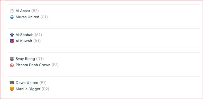ការប្រកួតពានរង្វាន់កម្រិតទី៣ ទ្វីបអាស៊ី AFC Challenge League សម្រាប់ពូល D និងពូល E បានរកឃើញក្រុមដែលទទួលបានចំណាត់ថ្នាក់លេខ១ និងលេខ២ហើយ ។ ពូល D លេខ១ ព្រះខ័នរាជស្វាយរៀង កម្ពុជា, លេខ២ ក្លិប Manila Digger ។ ចំណែកពូល E លេខ១ ក្រុម Dewa United, លេខ២ ភ្នំពេញក្រោន កម្ពុជា ។ ដូចនេះ ការប្រកួតបន្ត ក្រុមលេខ១ ពូល E នឹងត្រូវជួបក្រុមលេខ២ ពូល D ឯក្រុមលេខ១ ពូល D នឹងត្រូវជួបក្រុមលេខ២ ពូល E វិញ ដើម្បីប្រជែងយកកៅអីឡើងទៅកាន់វគ្គពាក់កណ្ដាលផ្ដាច់ព្រ័ត្រ។
