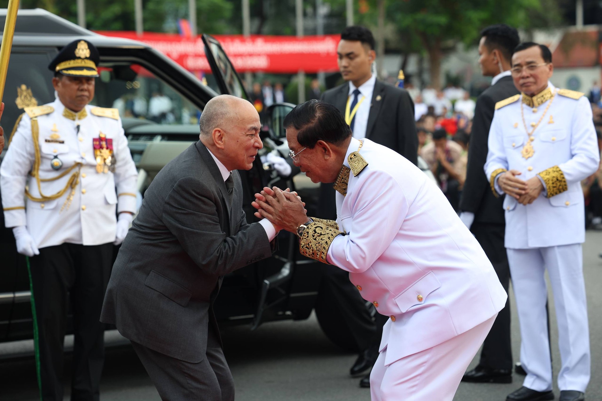 ពិធីនេះក៏មានការអញ្ជើញដង្ហែព្រះរាជដំណើរដោយសម្តេចតេជោ ហ៊ុន សែន ប្រធានព្រឹទ្ធសភា សម្តេចមហារដ្ឋសភាធិការបតី ឃួន សុដារី ប្រធានរដ្ឋសភា សម្តេចមហាបវរធិបតី ហ៊ុន ម៉ាណែត នាយករដ្ឋមន្ត្រីកម្ពុជា សមាជិកឧត្តមប្រឹក្សាផ្ទាល់ព្រះមហាក្សត្រ សមាជិក សមាជិកាព្រឹទ្ធសភា រដ្ឋសភា និងរាជរដ្ឋាភិបាល ព្រមទាំងប្រជាពលរដ្ឋខ្មែរផងដែរ។