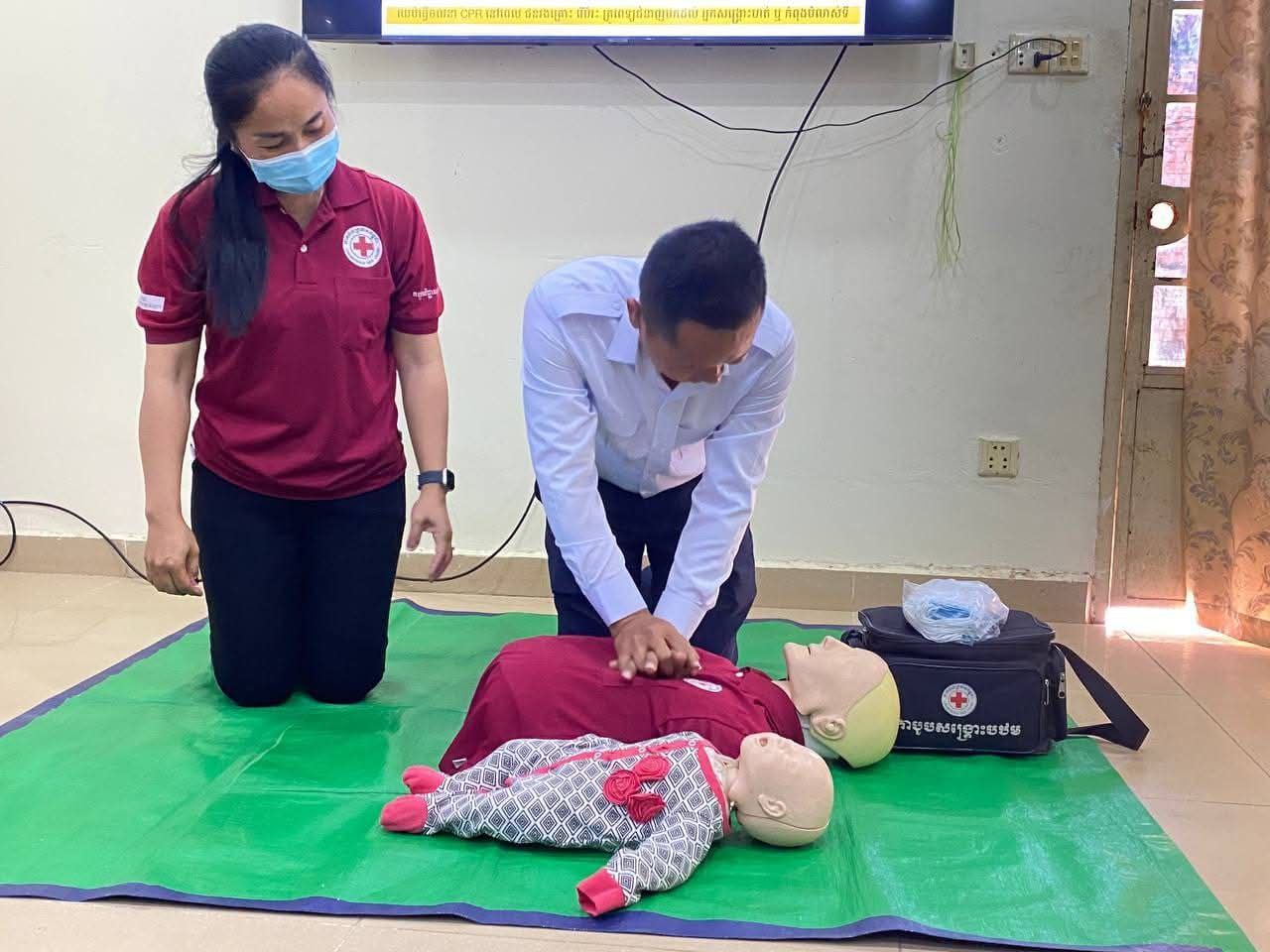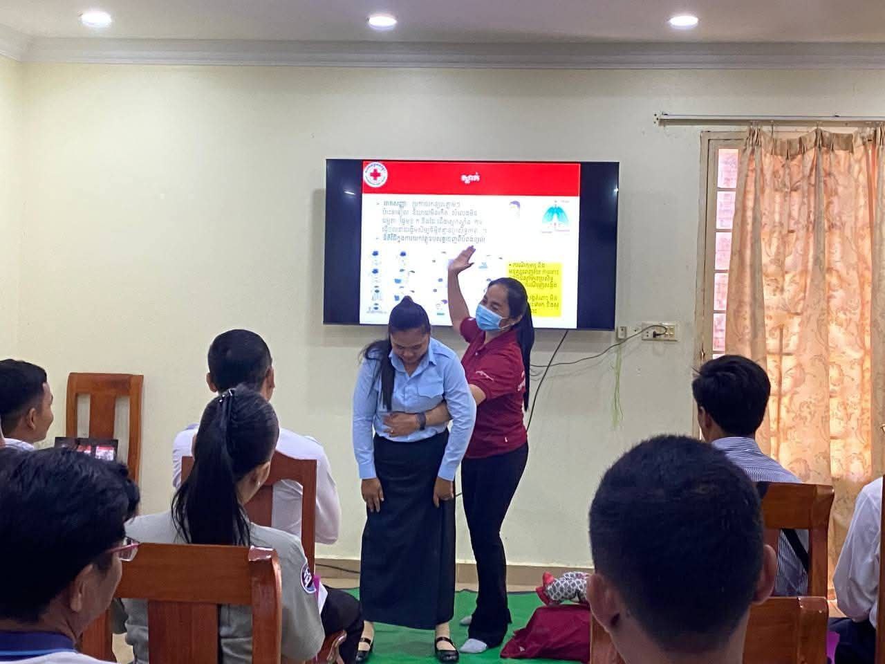ក្នុងឱកាសនោះ លោក លោកស្រី ដែលជាគ្រូបង្គោលសាខាកាកបាទក្រហមកម្ពុជាខេត្ត បានធ្វើបទបង្រៀនវិជ្ជាសង្គ្រោះបឋម ដល់សមាជិក សមាជិការ ដើម្បីងាយស្រួលក្នុងការជួយសង្គ្រោះបឋម ដែលត្រូវជួយជនរងគ្រោះ ឬអ្នកជំងឺមុនពេលគ្រូពេទ្យជំនាញ និងរថយន្តសង្គ្រោះបន្ទាន់មកដល់គោលបំណងសំខាន់គឺ កាត់បន្ថយការឈឺចាប់ និងជួយសង្គ្រោះជីវិត ជនរងគ្រោះកុំឱ្យមានគ្រោះថ្នាក់បន្ថែម និងជួយសម្រួលដល់គ្រូពេទ្យងាយព្យាបាល។