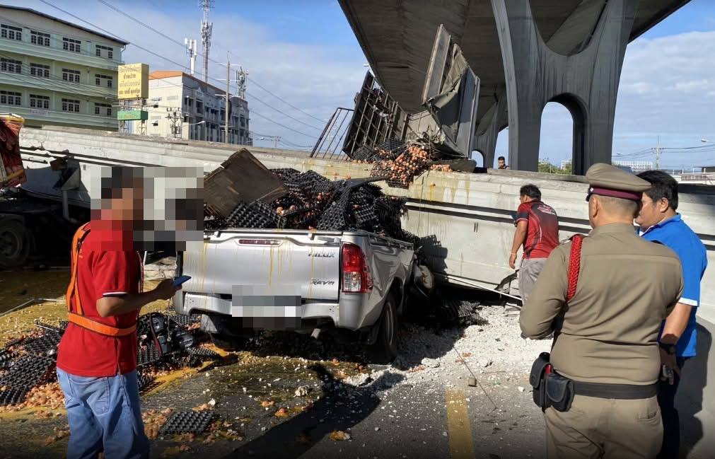 ស្ពានអាកាសថ្មើរជើងរបស់ថៃមួយកន្លែង នៅលើផ្លូវបាងណា-ត្រាត បានបាក់រលំរាបដល់ដី សង្កត់លើឡានជាច្រើនគ្រឿង និងបណ្ដាលឲ្យមនុស្សជាច្រើននាក់ទៀតរងរបួស ហើយខ្លះទៀតជាប់គាំងខ្លួននៅក្នុងរថយន្តចេញមិនរួចឡើយ ហេតុការណ៍នេះកើតឡើងនៅព្រឹកថ្ងៃព្រហស្បតិ៍ទី១៨ធ្នូ ២០២៥នេះ ស្ថិតនៅចំនុចគីឡូម៉ែត្រលេខ៣៤ ទល់មុខផ្សារណាំថៃ ខេត្តសាមុតប្រាកាន ។